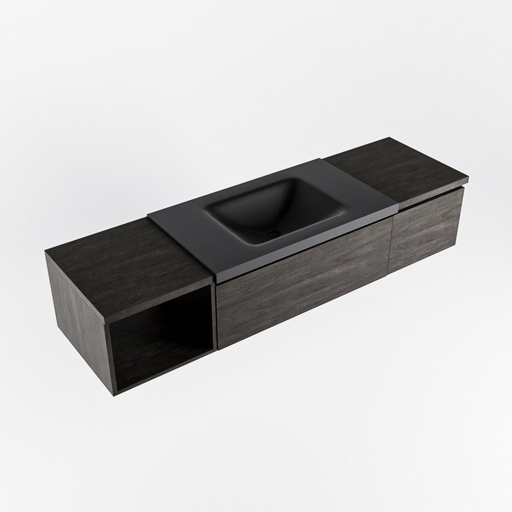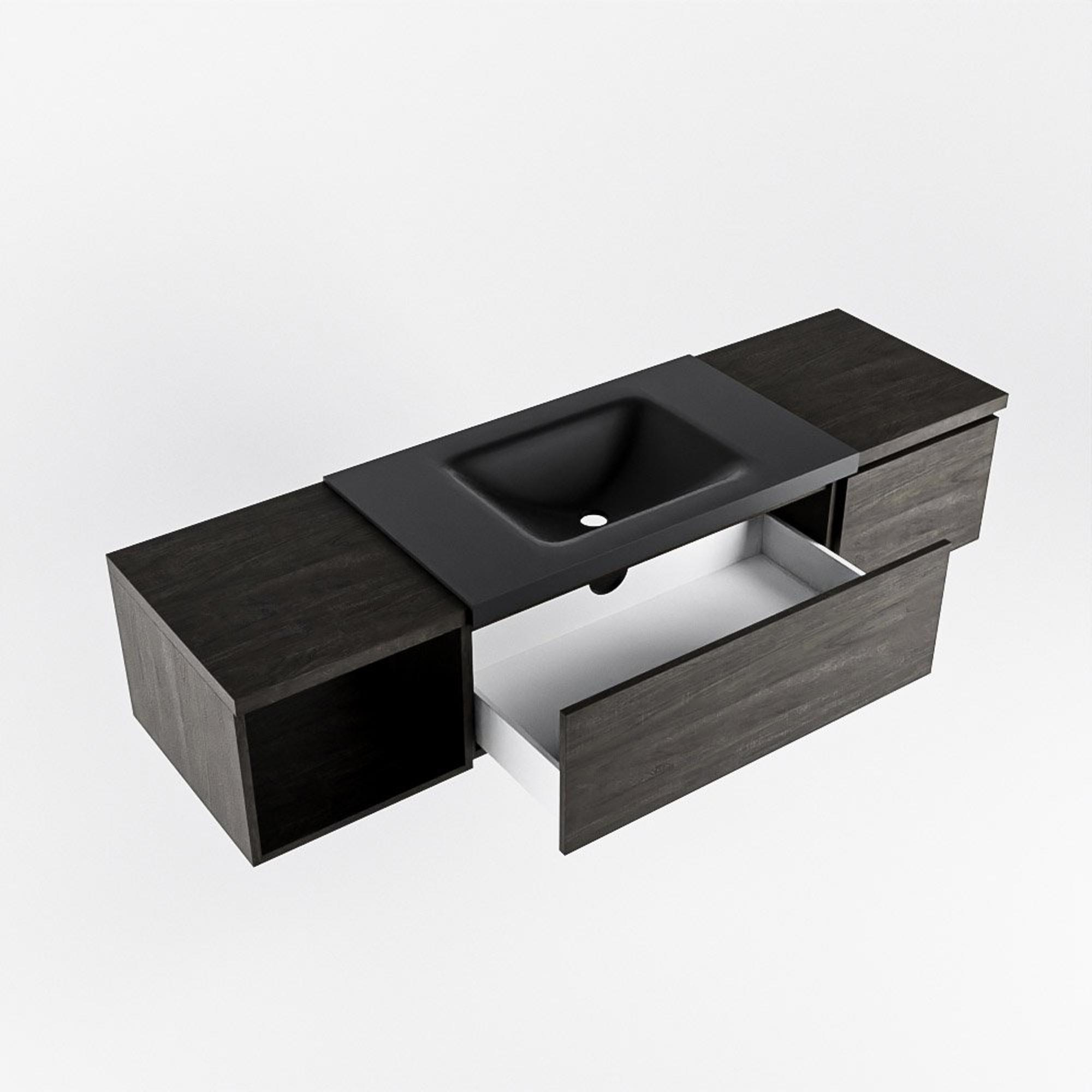 MONDIAZ BUKLA 160cm badmeubel met open module 40 links kleur Dark Brown met 2 lades. Wastafel CLOUD midden 0 kraangaten kleur Urban.