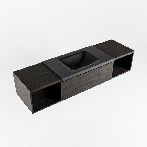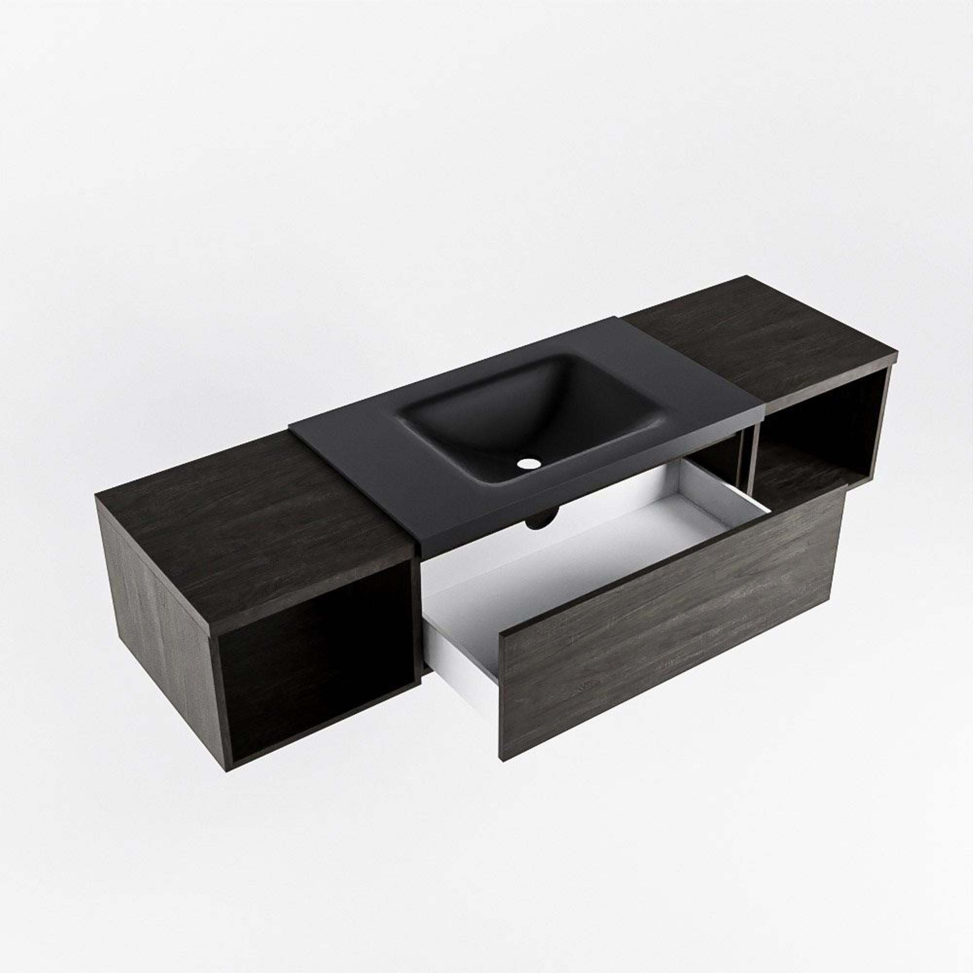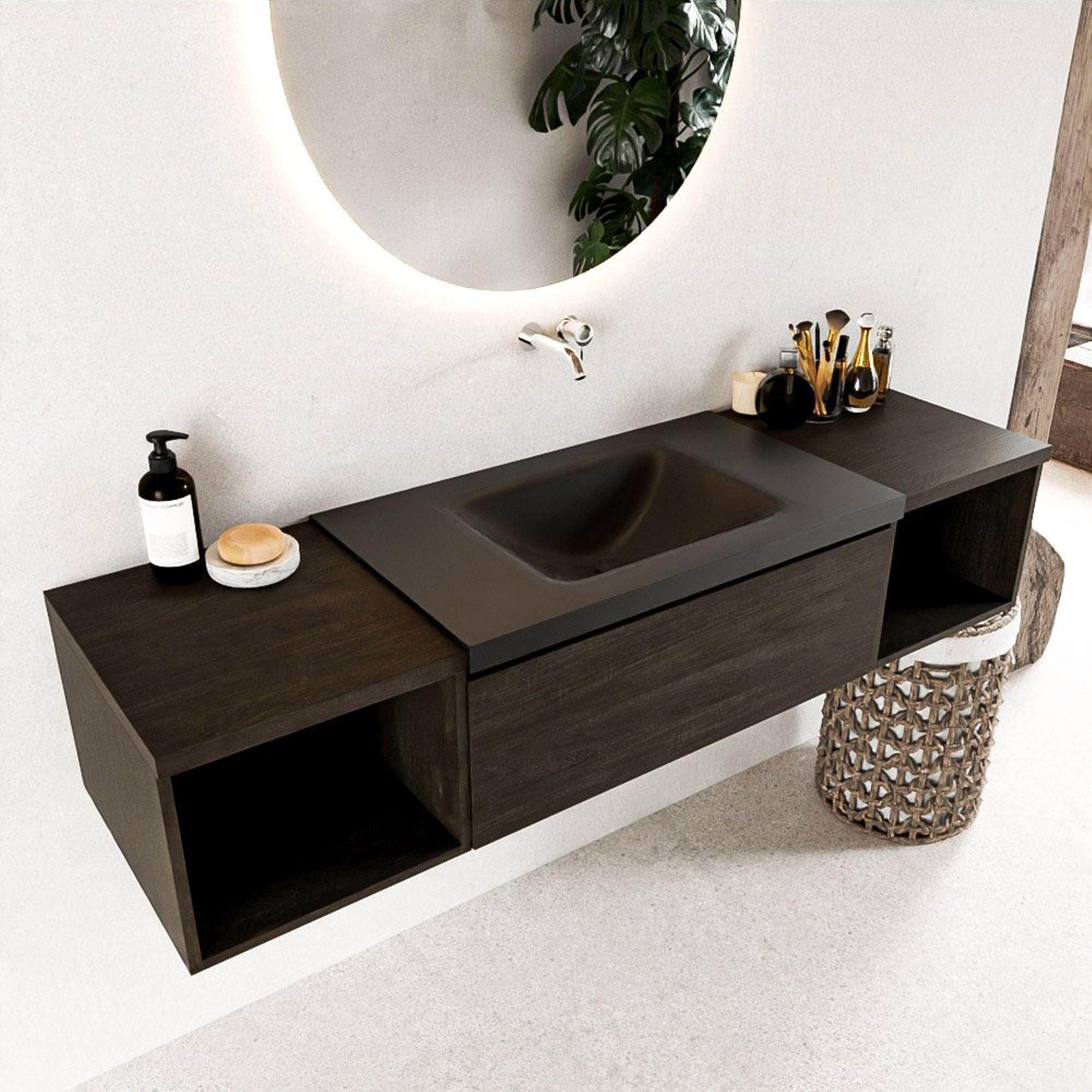 MONDIAZ BUKLA 160cm badmeubel met open module 40 L+R kleur Dark Brown met 1 lade. Wastafel CLOUD midden 0 kraangaten kleur Urban.