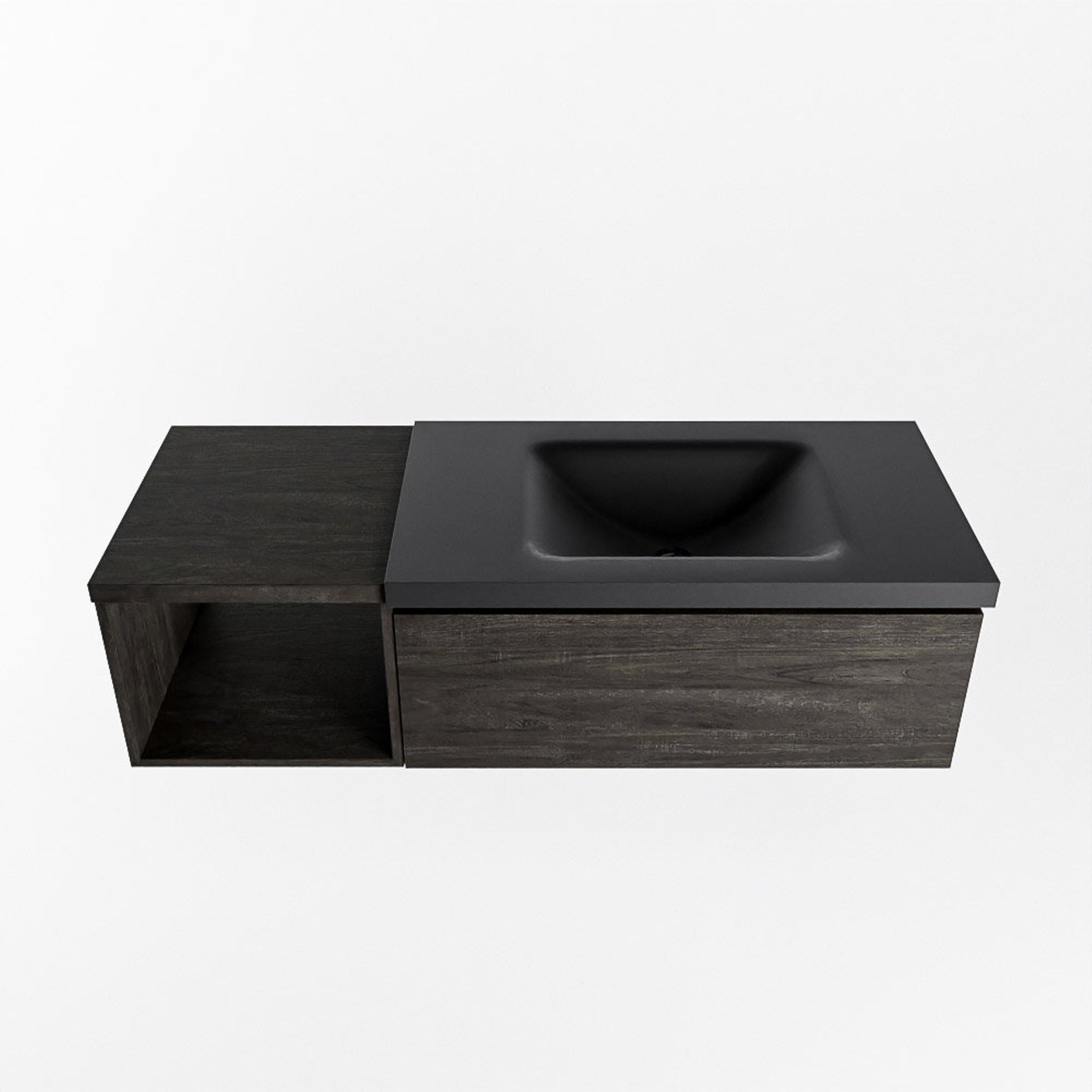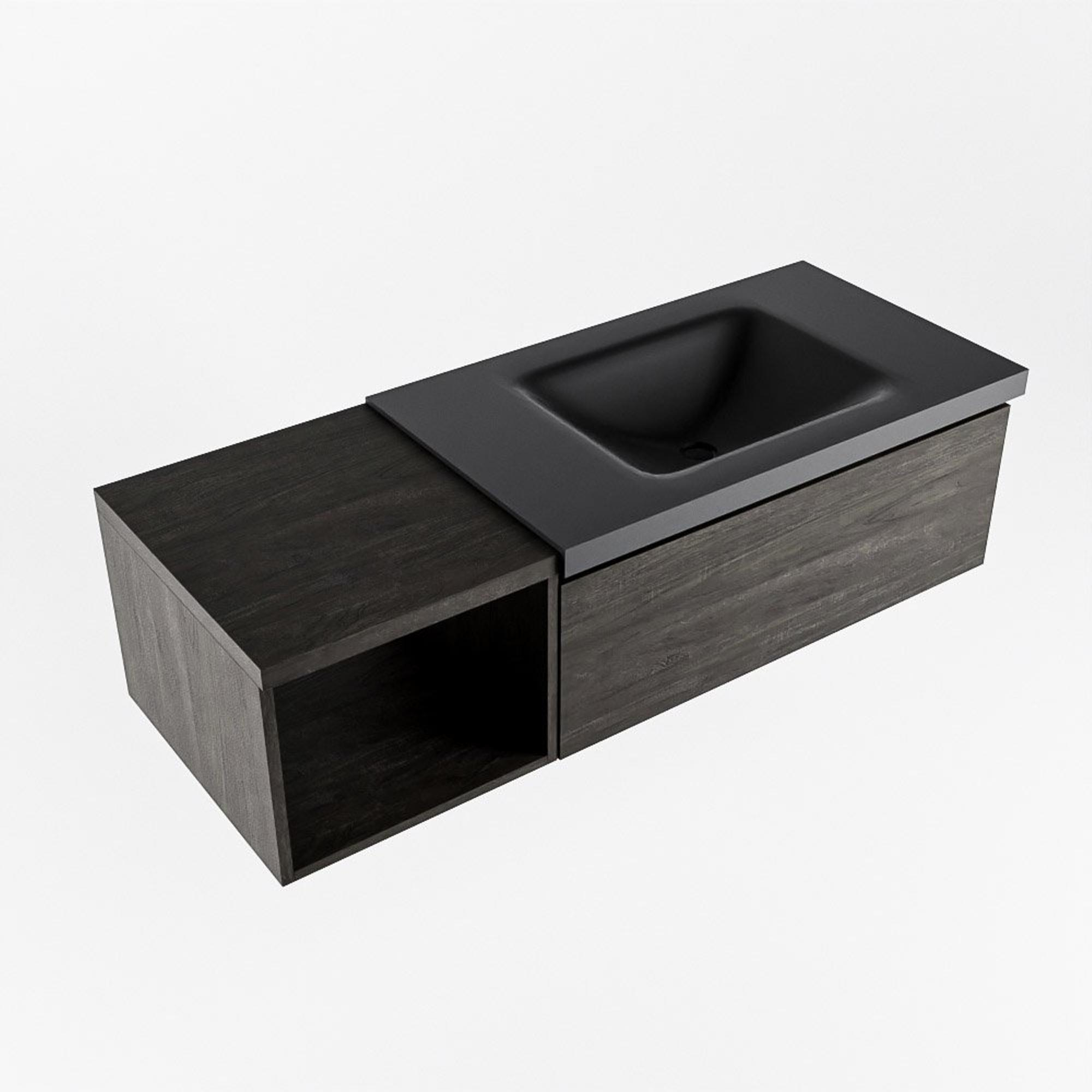 MONDIAZ BUKLA 120cm badmeubel met open module 40 kleur Dark Brown met 1 lade. Wastafel CLOUD rechts 0 kraangaten kleur Urban.