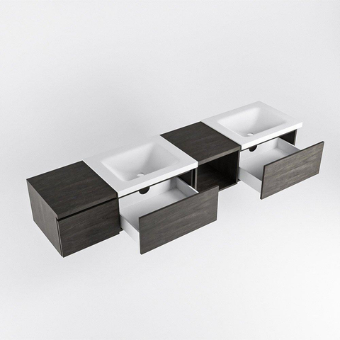 Naast zijn esthetische waarde is dit badmeubel ook uiterst praktisch. Met 3 ruime lades biedt het voldoende opbergruimte voor al jouw badkamerbenodigdheden. De dubbele wastafel met nul kraangaten zorgt voor een opgeruimde uitstraling en maakt het gemakkelijk om de badkamer schoon te houden.