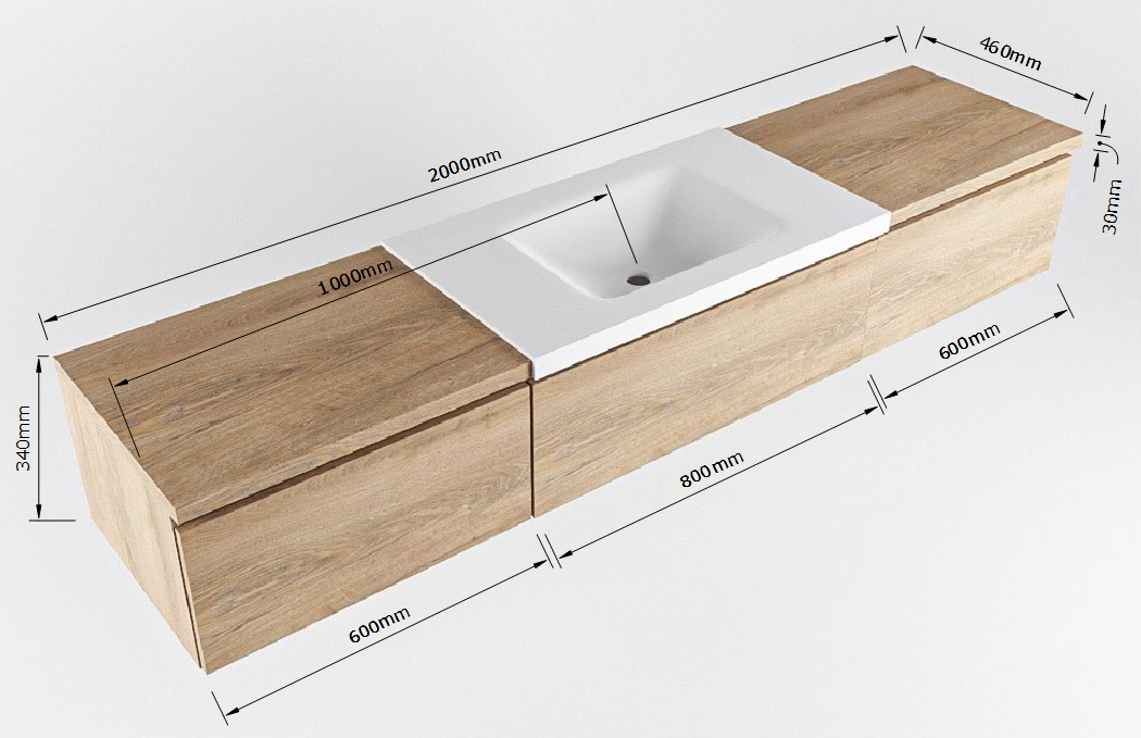 - MONDIAZ BUKLA 200cm badmeubel met module