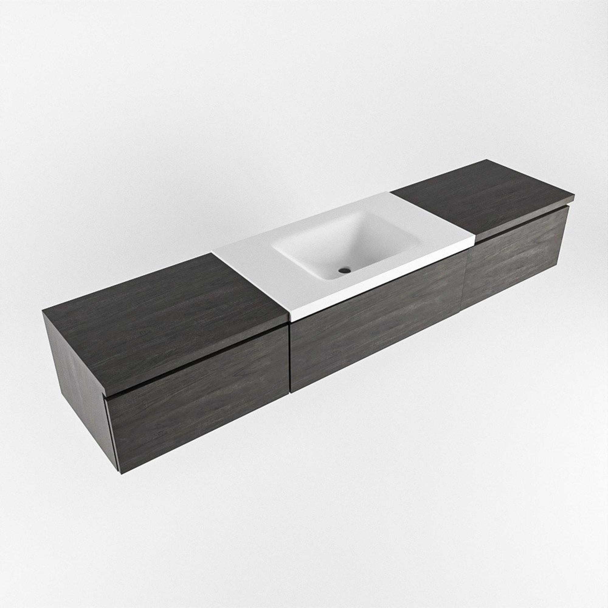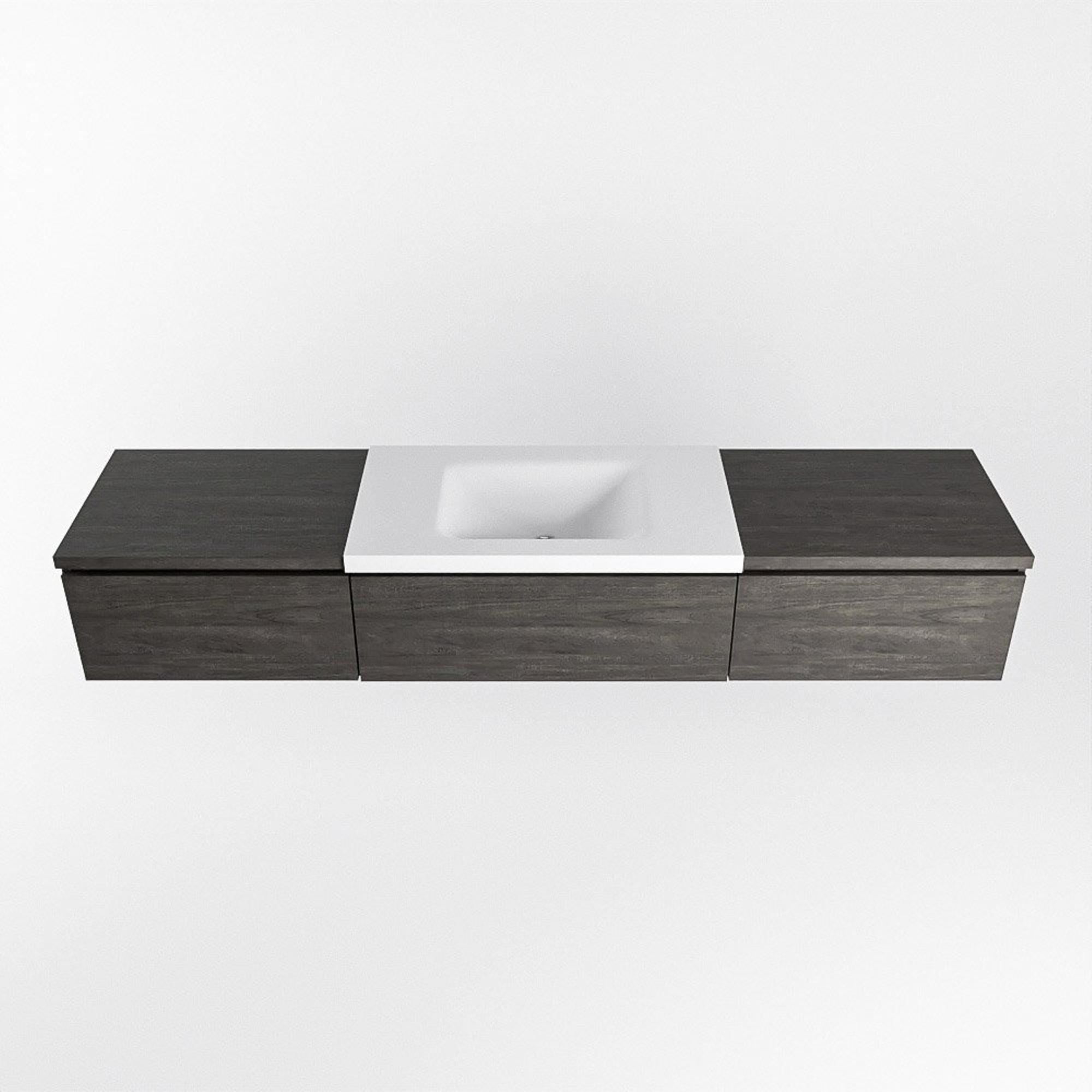 MONDIAZ BUKLA 200cm badmeubel met module 60 kleur Dark Brown met 3 lades. Wastafel CLOUD midden 0 kraangaten kleur Talc.