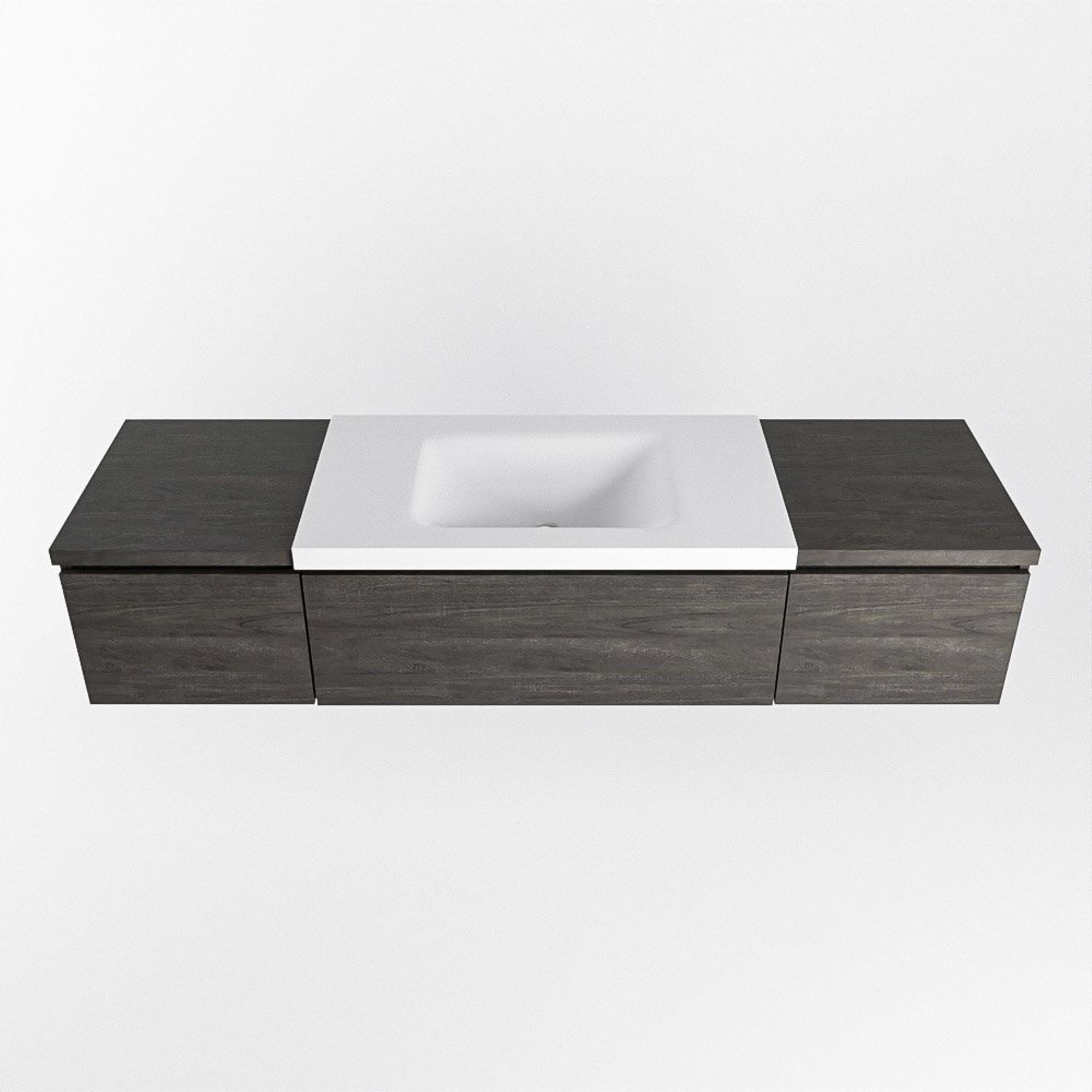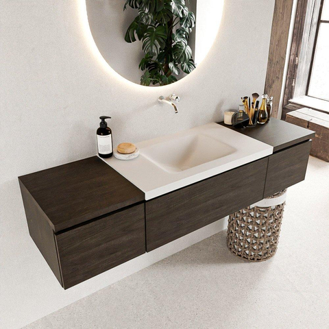 MONDIAZ BUKLA 160cm badmeubel met module 40 kleur Dark Brown met 3 lades. Wastafel CLOUD midden 0 kraangaten kleur Talc.