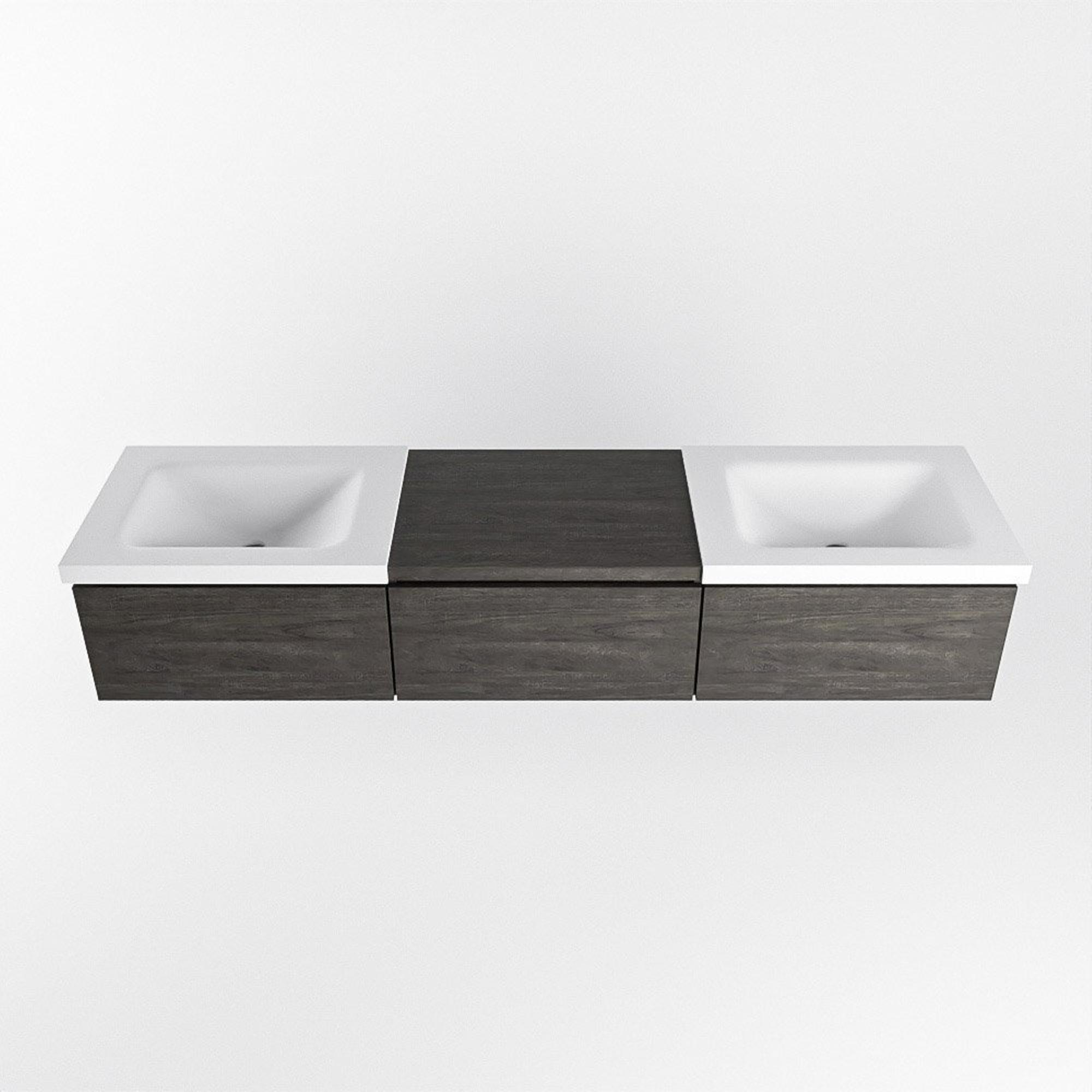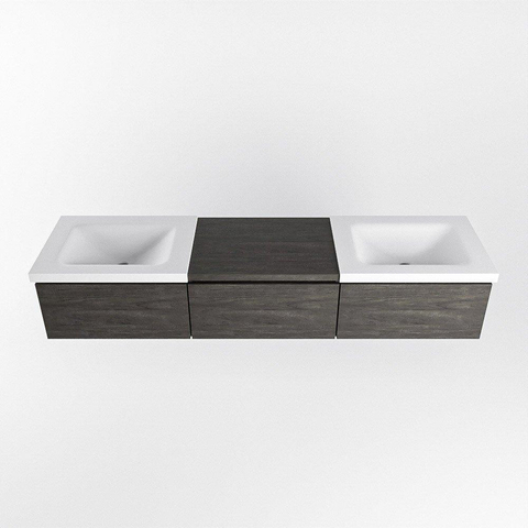 MONDIAZ BUKLA 180cm badmeubel met module 60 kleur Dark Brown met 3 lades. Wastafel CLOUD dubbel 0 kraangaten kleur Talc.