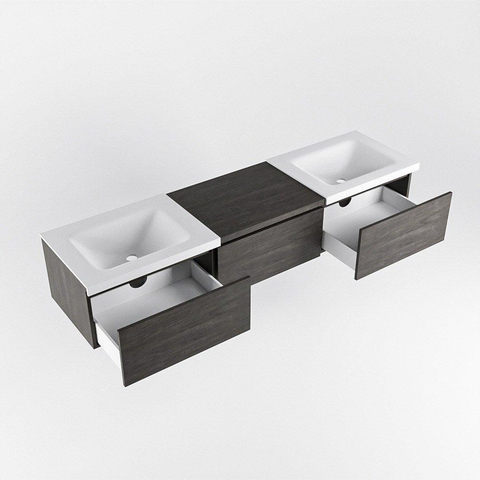 Naast zijn esthetische waarde is dit badmeubel ook uiterst praktisch. De 3 lades bieden voldoende opbergruimte voor al je badkamerbenodigdheden, terwijl de dubbele wastafel ervoor zorgt dat er genoeg ruimte is voor twee personen om tegelijkertijd gebruik te maken van de wastafel.