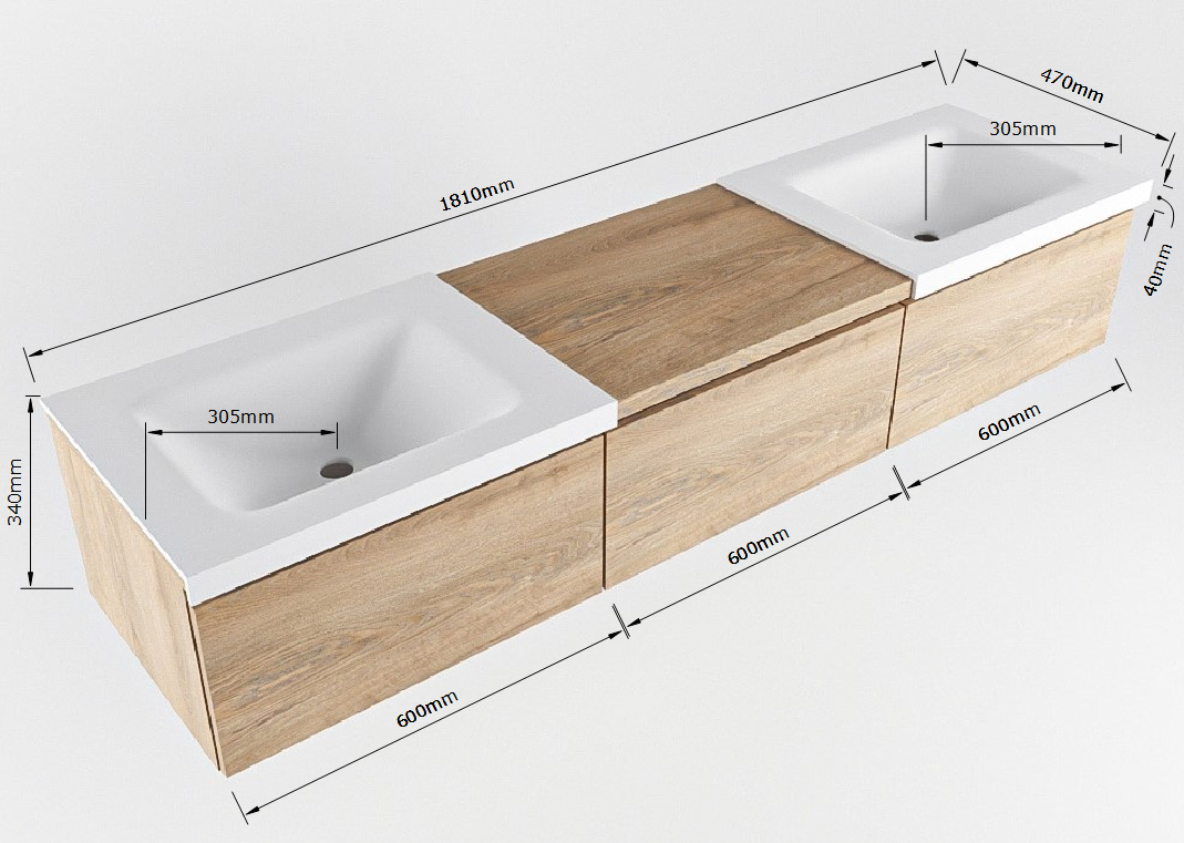 Naast zijn esthetische waarde is dit badmeubel ook uiterst functioneel. Met 3 ruime lades biedt het voldoende opbergruimte voor al jouw badkamerspullen. De dubbele wastafel zorgt ervoor dat er genoeg ruimte is voor twee personen om tegelijkertijd gebruik te maken van de wastafel, wat het perfect maakt voor drukke ochtenden.
