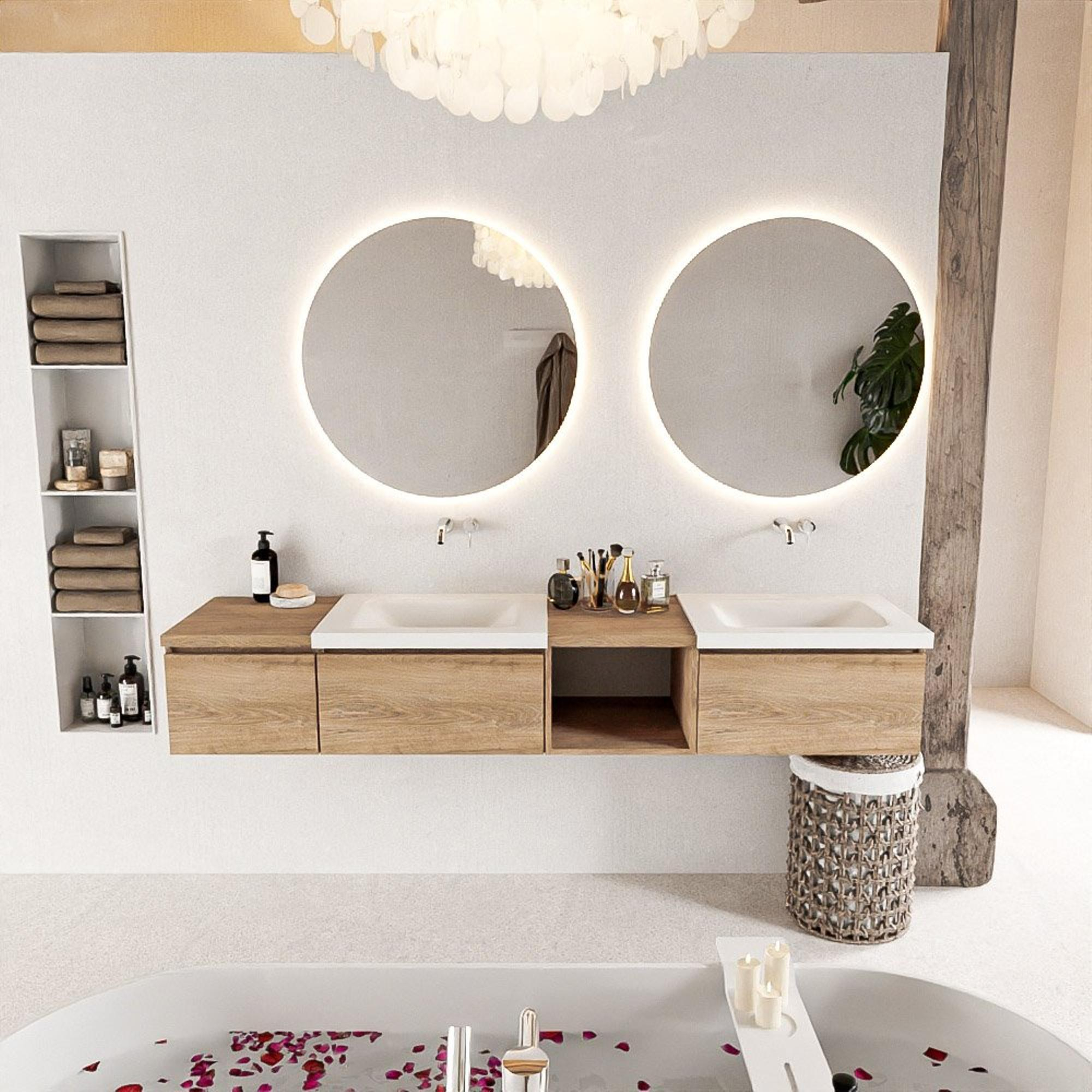 - Kleur: Washed Oak (badmeubel) en Talc (wastafel)