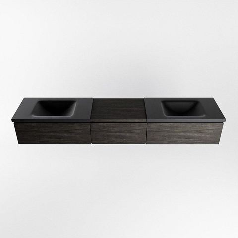 MONDIAZ BUKLA 220cm badmeubel met module 60 kleur Dark Brown met 3 lades. Wastafel CLOUD dubbel 2 kraangaten kleur Urban.