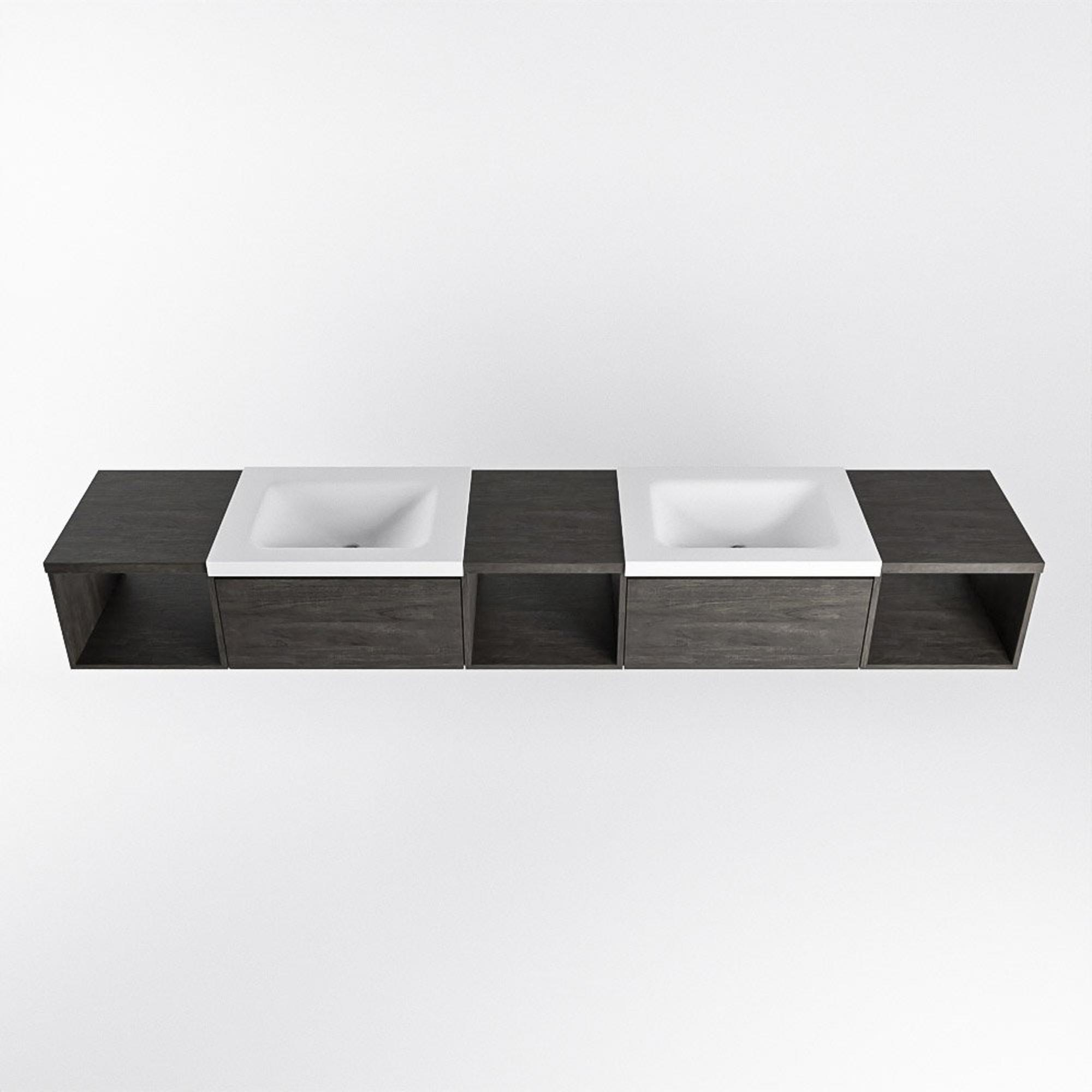 MONDIAZ BUKLA 240cm badmeubel met open module 40 L+M+R kleur Dark Brown met 2 lades. Wastafel CLOUD dubbel 0 kraangaten kleur Talc.