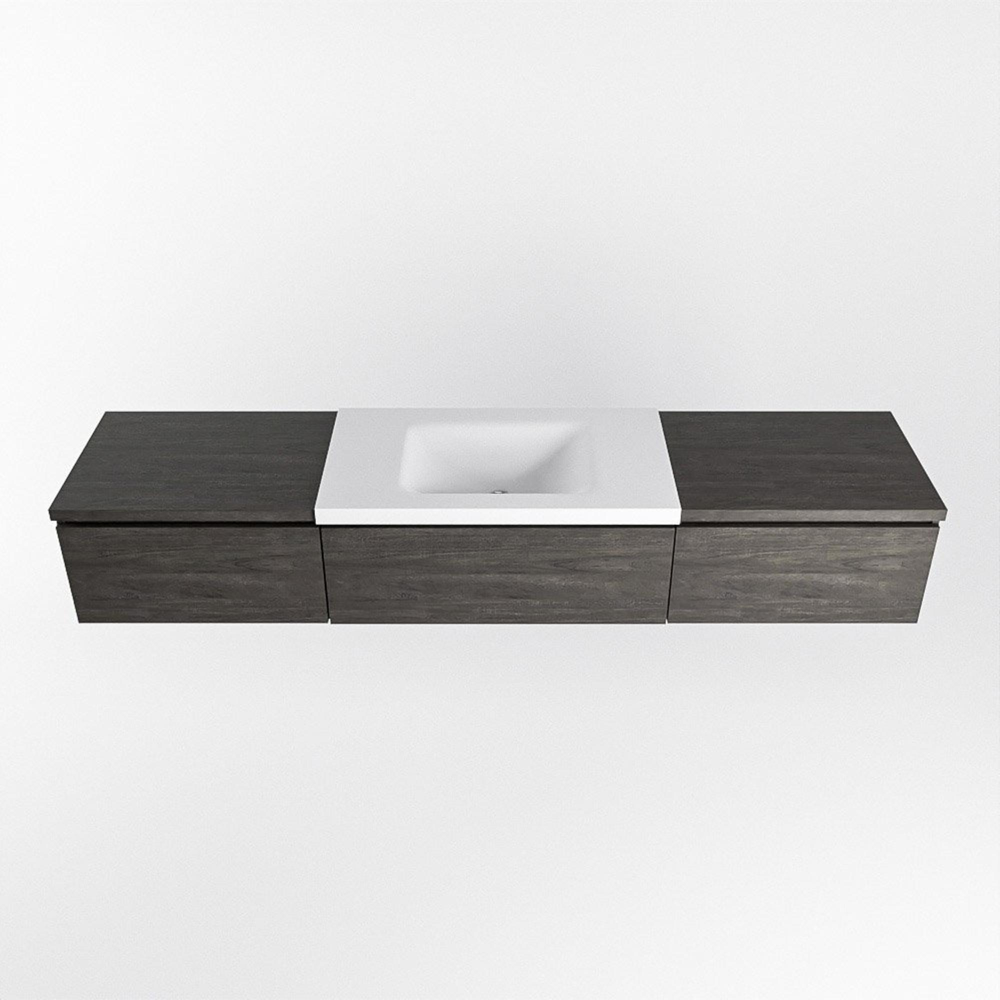 MONDIAZ BUKLA 200cm badmeubel met module 60 kleur Dark Brown met 3 lades. Wastafel CLOUD midden 1 kraangat kleur Talc.