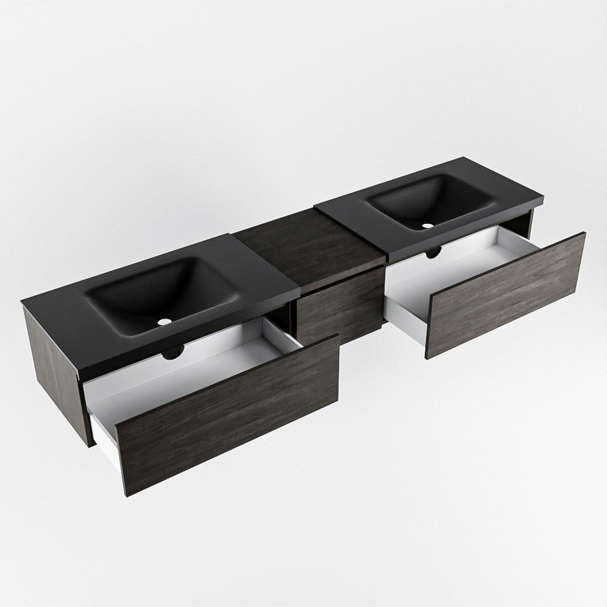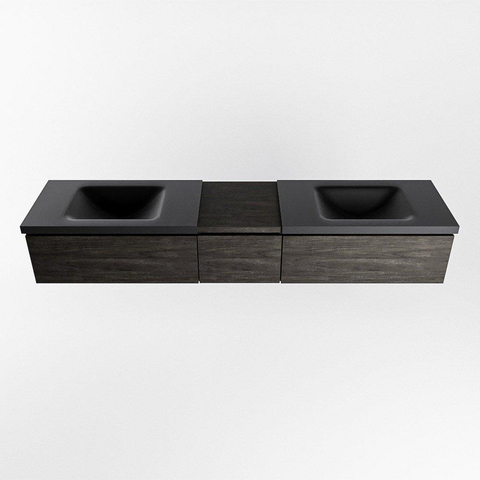 MONDIAZ BUKLA 200cm badmeubel met module 40 kleur Dark Brown met 3 lades. Wastafel CLOUD dubbel 2 kraangaten kleur Urban.