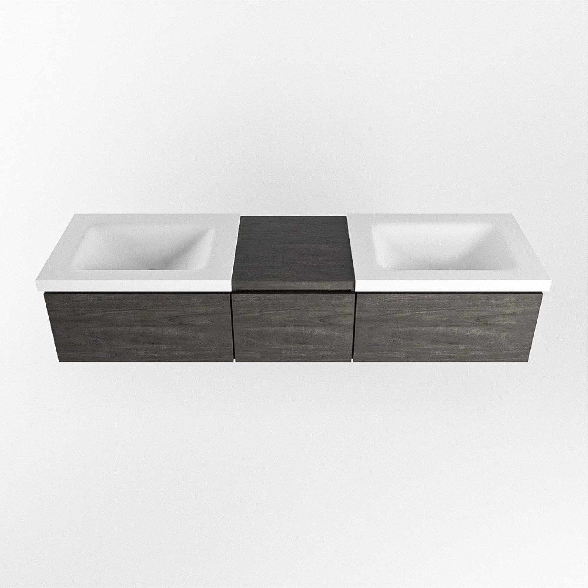 MONDIAZ BUKLA 160cm badmeubel met module 40 kleur Dark Brown met 3 lades. Wastafel CLOUD dubbel 2 kraangaten kleur Talc.