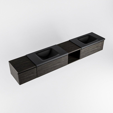 MONDIAZ BUKLA 240cm badmeubel met open module 40 rechts kleur Dark Brown met 3 lades. Wastafel CLOUD dubbel 0 kraangaten kleur Urban.