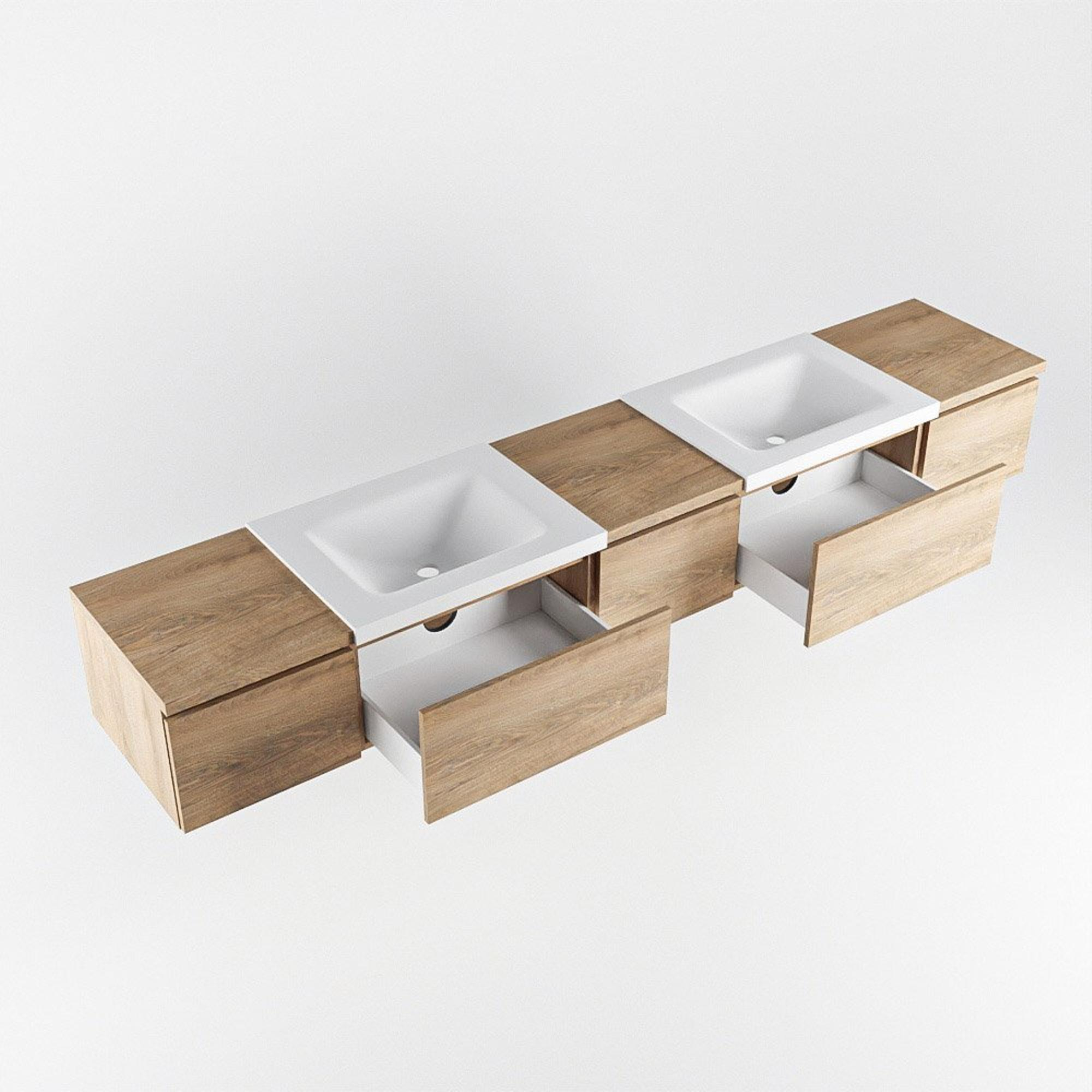 MONDIAZ BUKLA 240cm badmeubel met module 40 kleur Washed Oak met 5 lades. Wastafel CLOUD dubbel 0 kraangaten kleur Talc.