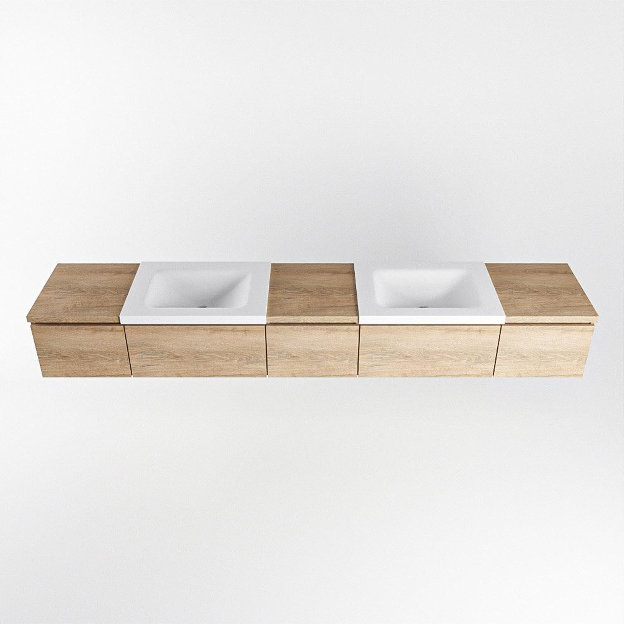 MONDIAZ BUKLA 240cm badmeubel met module 40 kleur Washed Oak met 5 lades. Wastafel CLOUD dubbel 2 kraangaten kleur Talc.