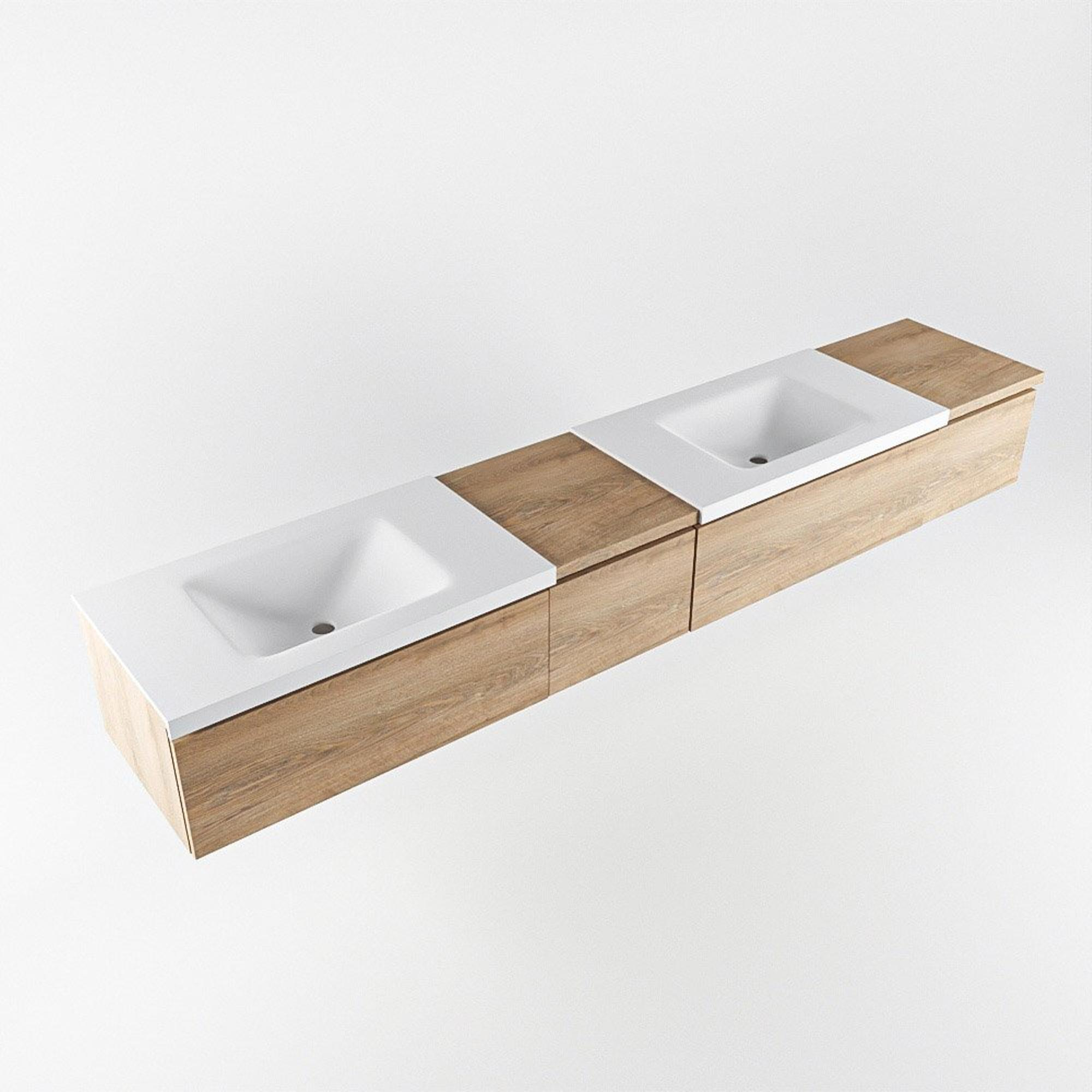 MONDIAZ BUKLA 240cm badmeubel met module 40 links kleur Washed Oak met 4 lades. Wastafel CLOUD dubbel 0 kraangaten kleur Talc.