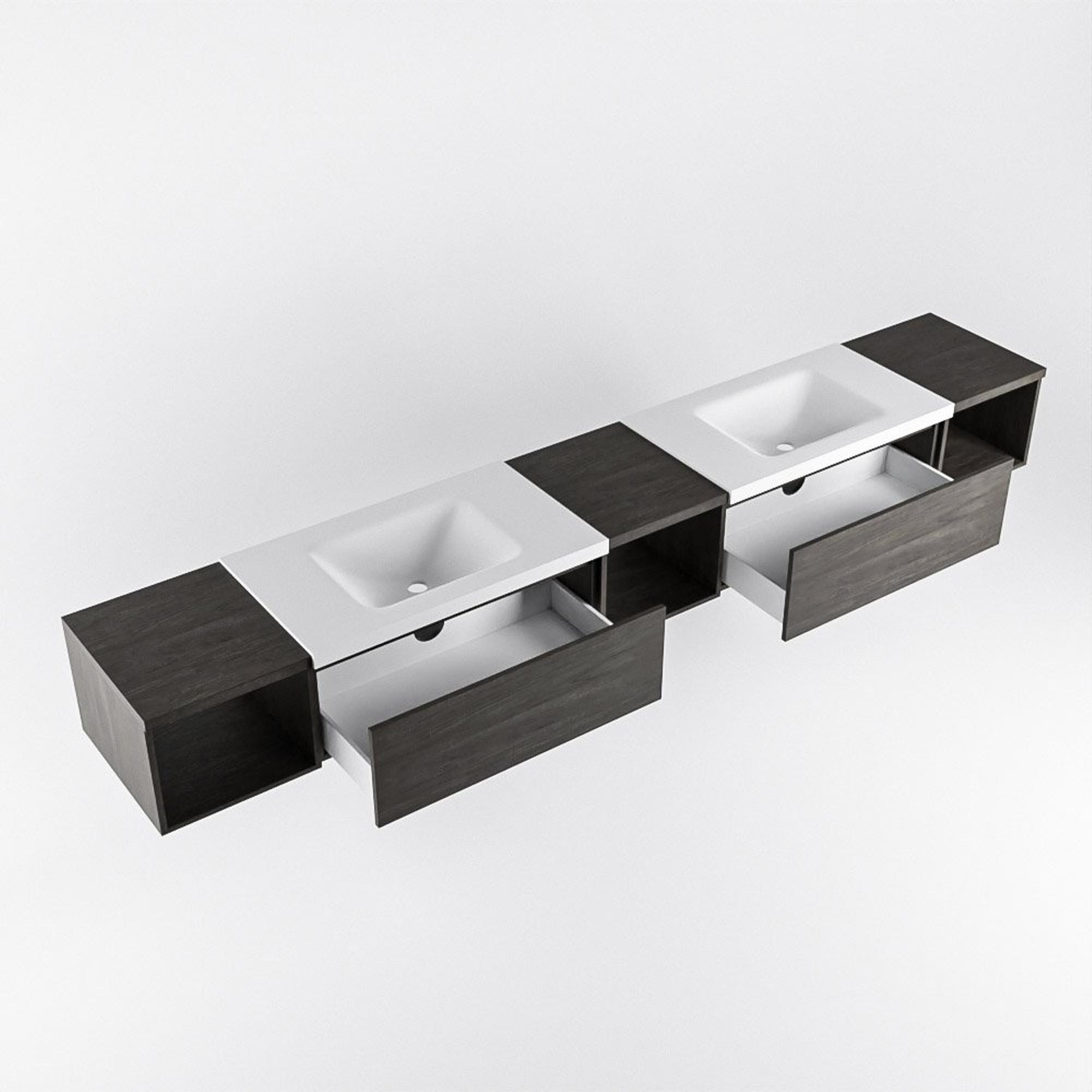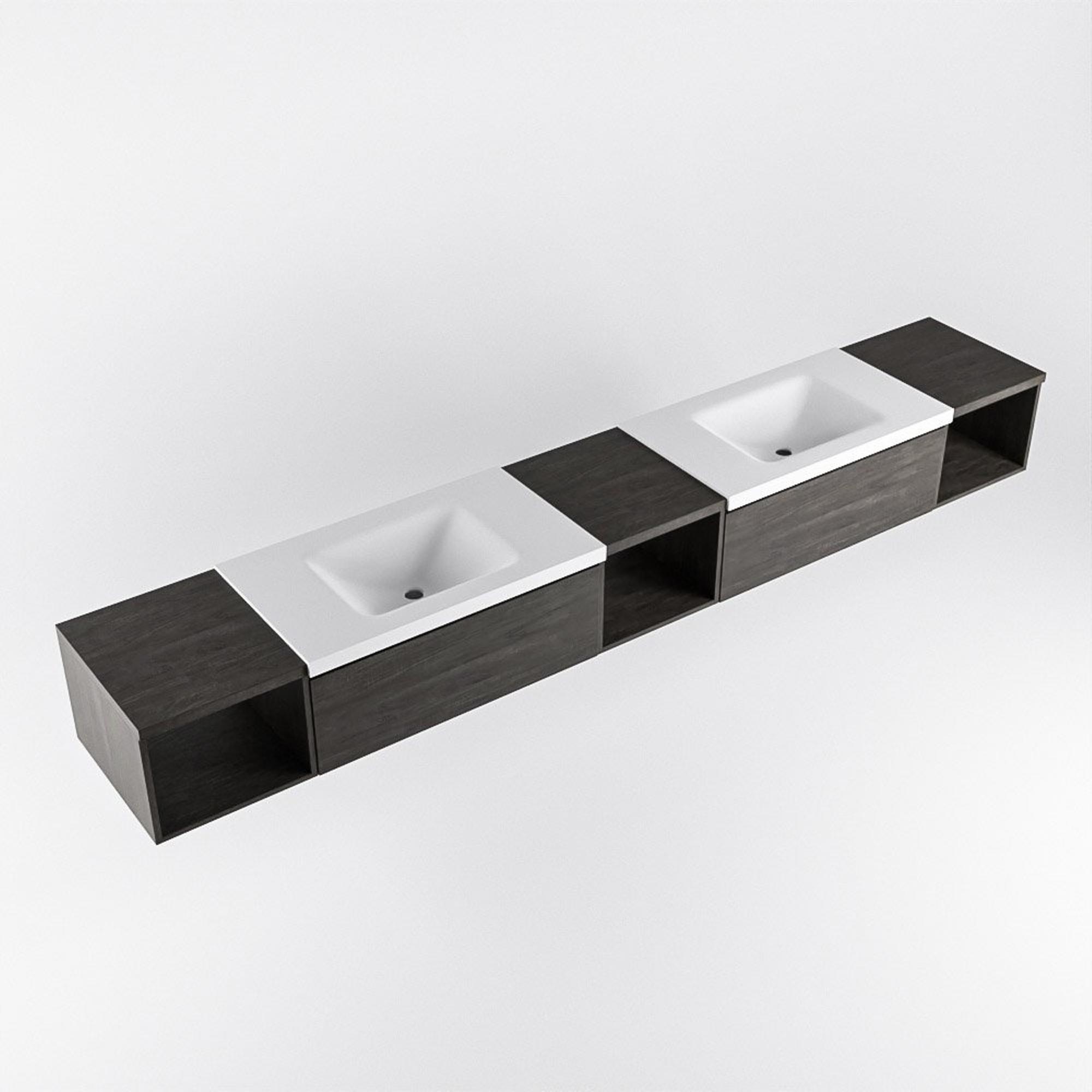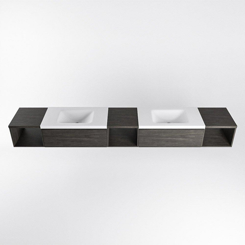 MONDIAZ BUKLA 280cm badmeubel met open module 40 L+M+R kleur Dark Brown met 2 lades. Wastafel CLOUD dubbel 0 kraangaten kleur Talc.