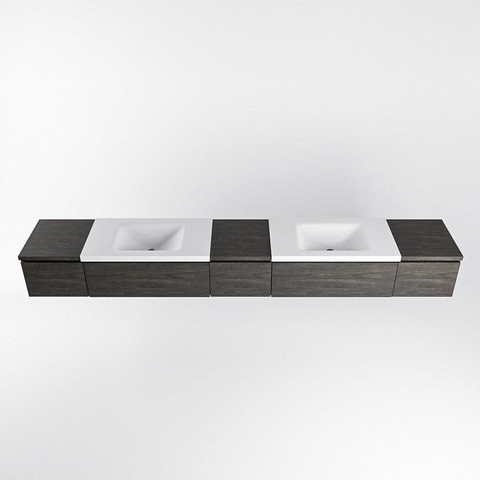 MONDIAZ BUKLA 280cm badmeubel met module 40 kleur Dark Brown met 5 lades. Wastafel CLOUD dubbel 2 kraangaten kleur Talc.