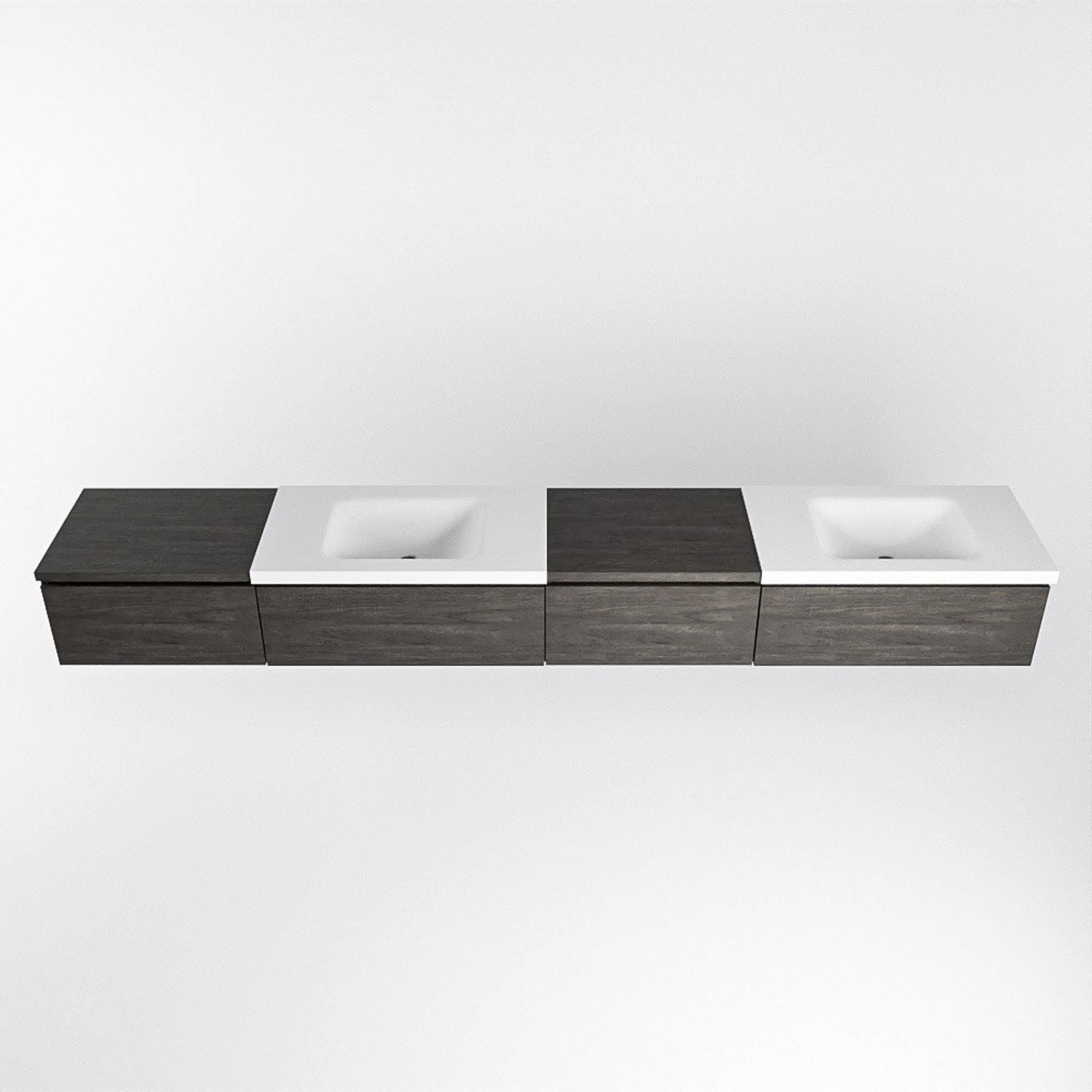 MONDIAZ BUKLA 280cm badmeubel met module 60 rechts kleur Dark Brown met 4 lades. Wastafel CLOUD dubbel 0 kraangaten kleur Talc.