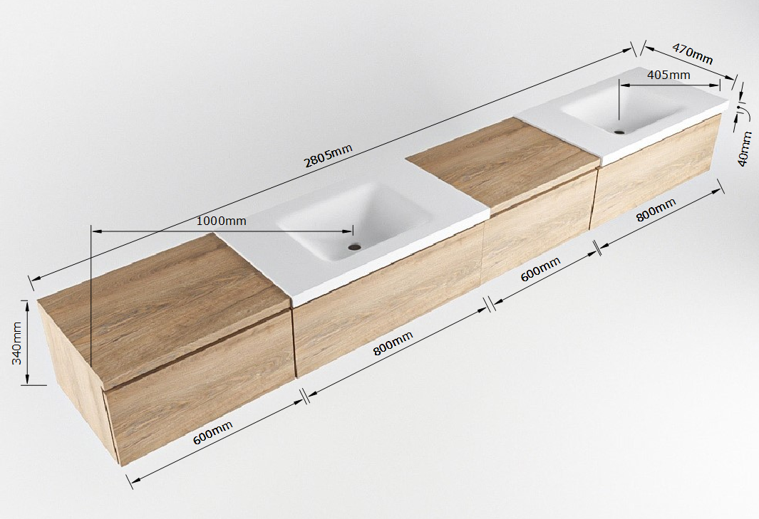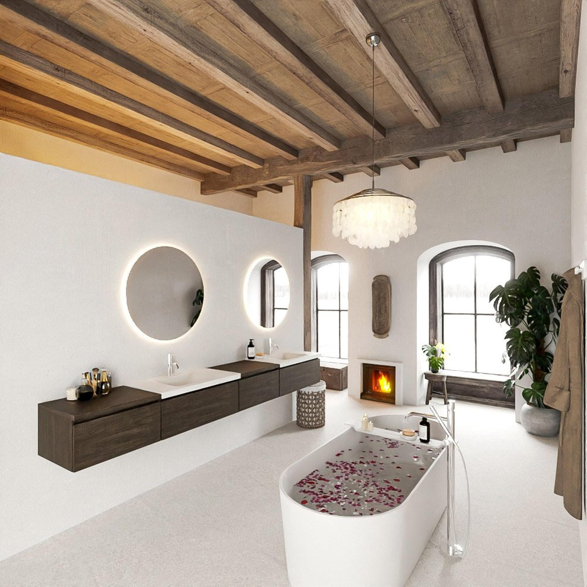 - Kleur: Dark Brown (badmeubel), Talc (wastafel)