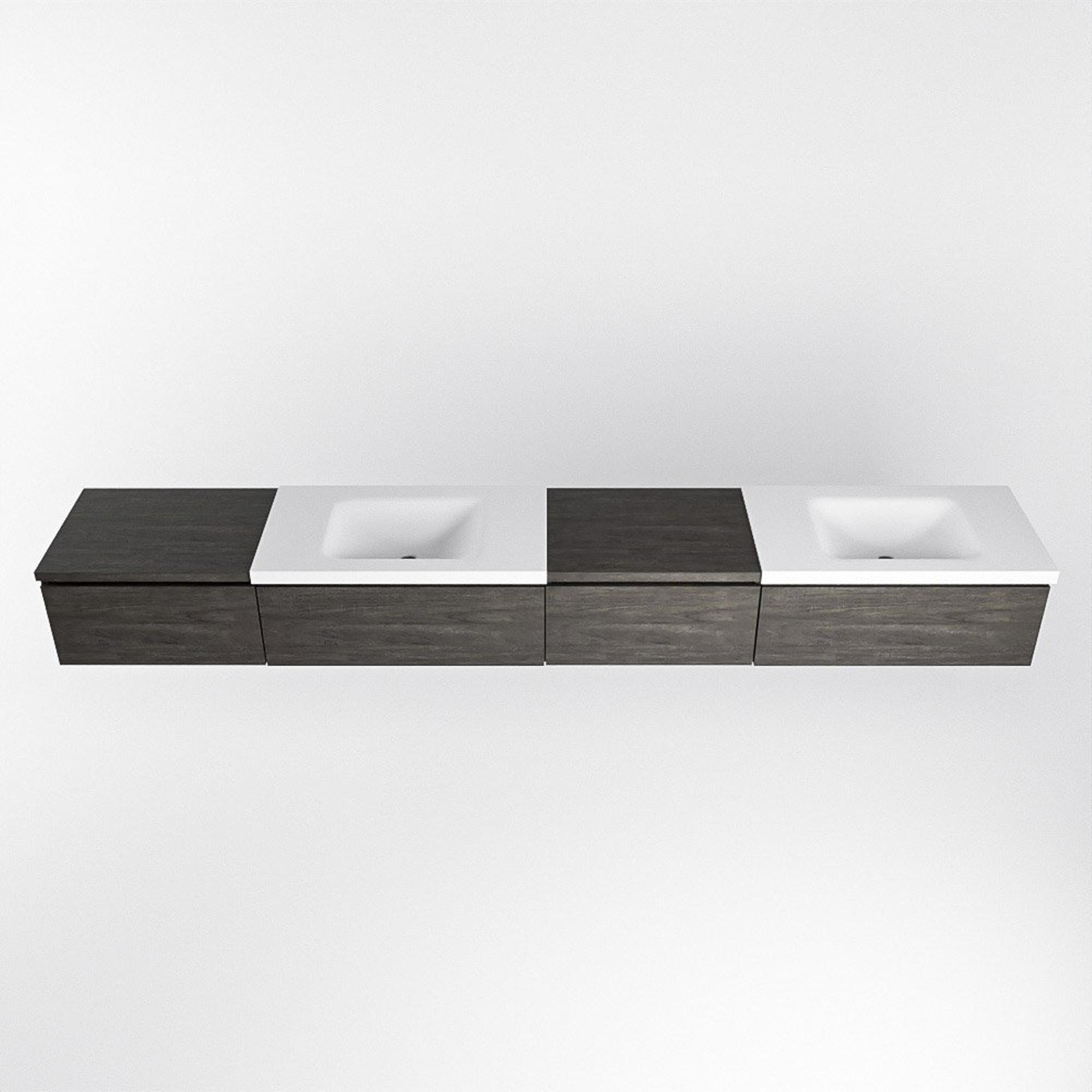 MONDIAZ BUKLA 280cm badmeubel met module 60 rechts kleur Dark Brown met 4 lades. Wastafel CLOUD dubbel 2 kraangaten kleur Talc.