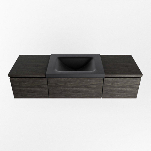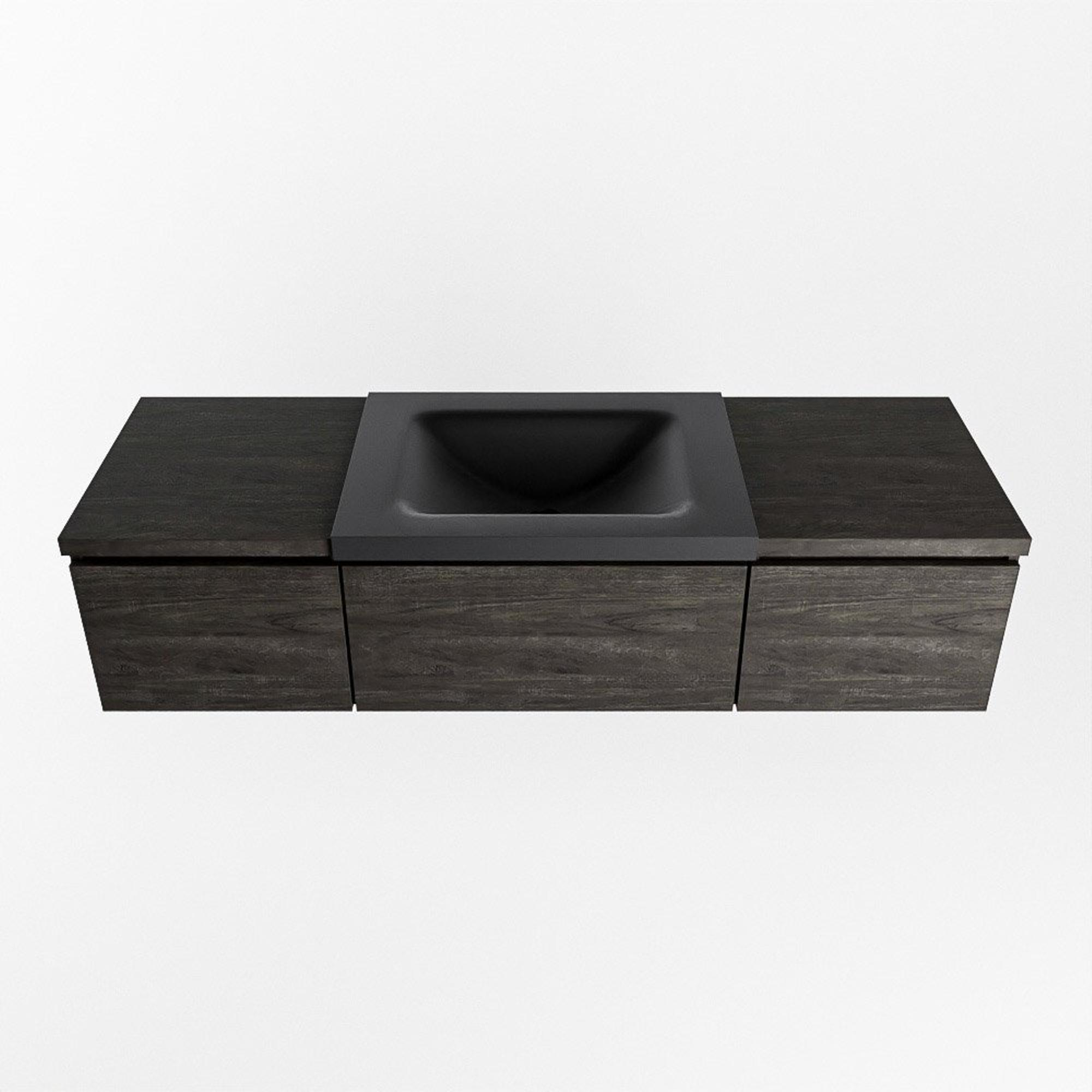 MONDIAZ BUKLA 140cm badmeubel met module 40 kleur Dark Brown met 3 lades. Wastafel CLOUD midden 0 kraangaten kleur Urban.