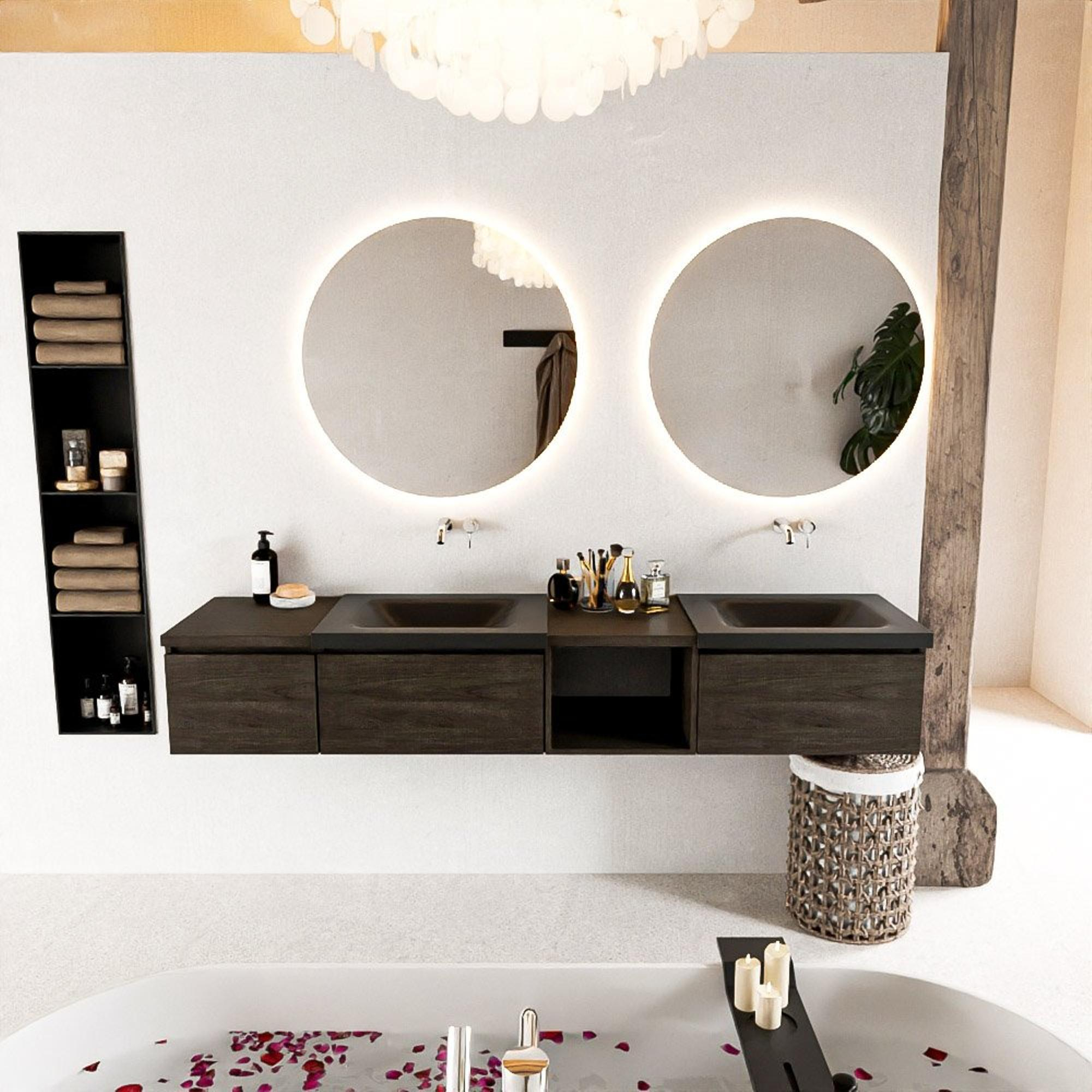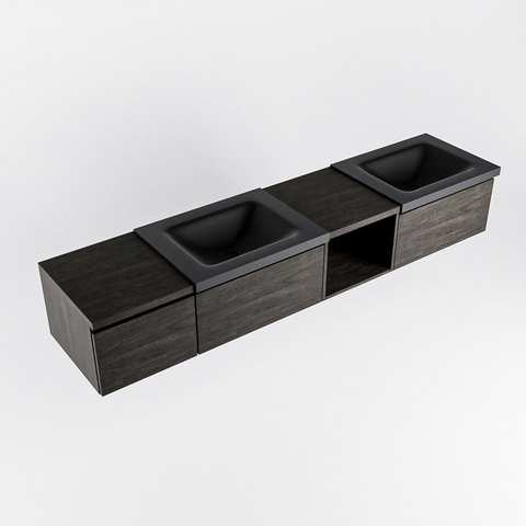 MONDIAZ BUKLA 200cm badmeubel met open module 40 rechts kleur Dark Brown met 3 lades. Wastafel CLOUD dubbel 0 kraangaten kleur Urban.