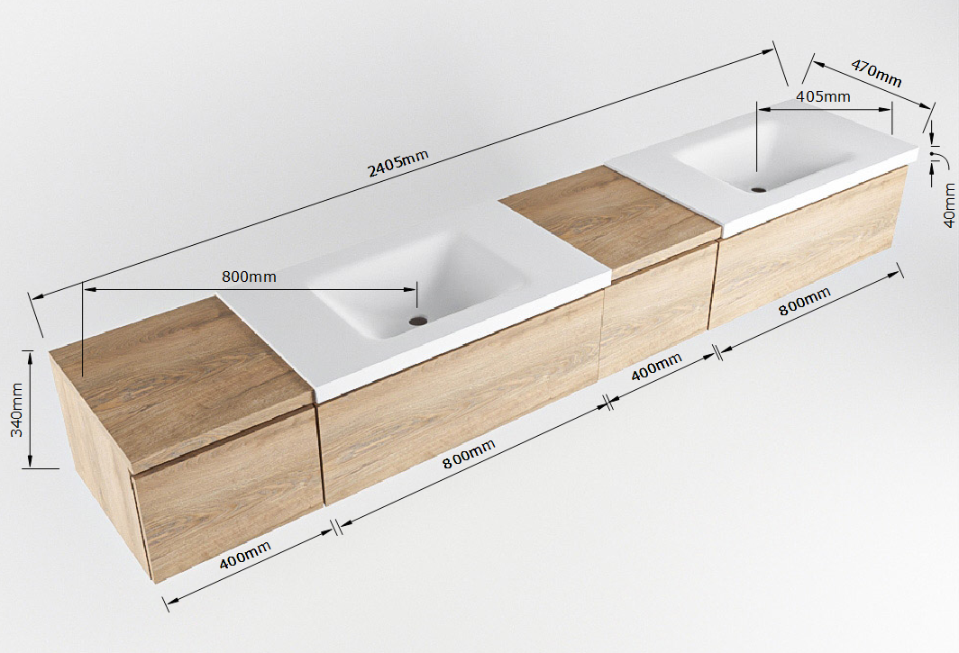 Naast zijn esthetische waarde is dit badmeubel ook zeer praktisch. De lades zijn voorzien van soft-close mechanisme voor een geruisloze sluiting en bescherming tegen slijtage. De dubbele wastafel maakt het gemakkelijk om tegelijkertijd gebruik te maken van de badkamer, waardoor ochtendrituelen soepeler verlopen.