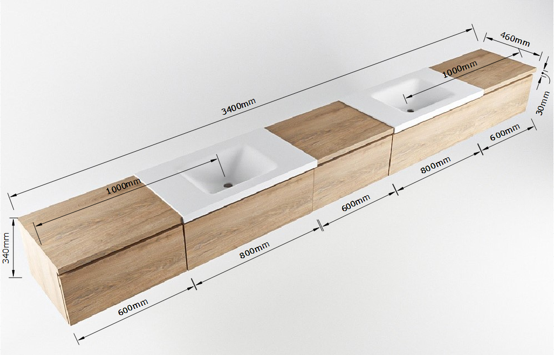 Naast het oogstrelende design is dit badmeubel ook uiterst functioneel. De vijf lades zorgen voor georganiseerde opslag van handdoeken, toiletartikelen en andere benodigdheden. De dubbele wastafel met twee kraangaten biedt voldoende ruimte voor dagelijkse verzorging, waardoor het een praktische keuze is voor elke badkamer.