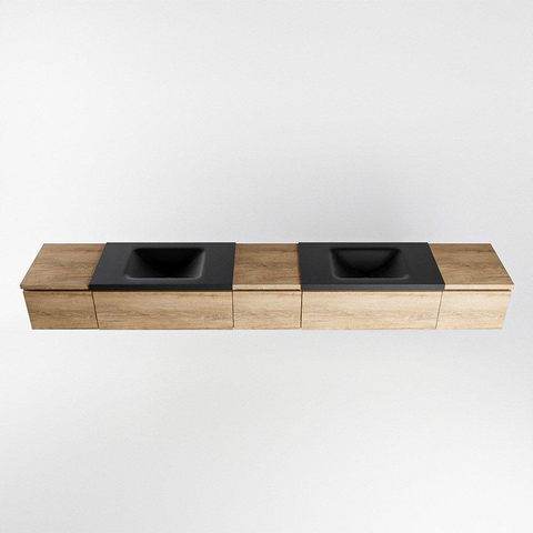 MONDIAZ BUKLA 280cm badmeubel met module 40 kleur Washed Oak met 5 lades. Wastafel CLOUD dubbel 0 kraangaten kleur Urban.