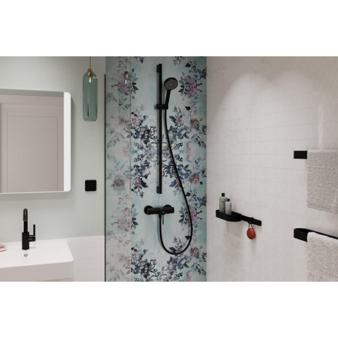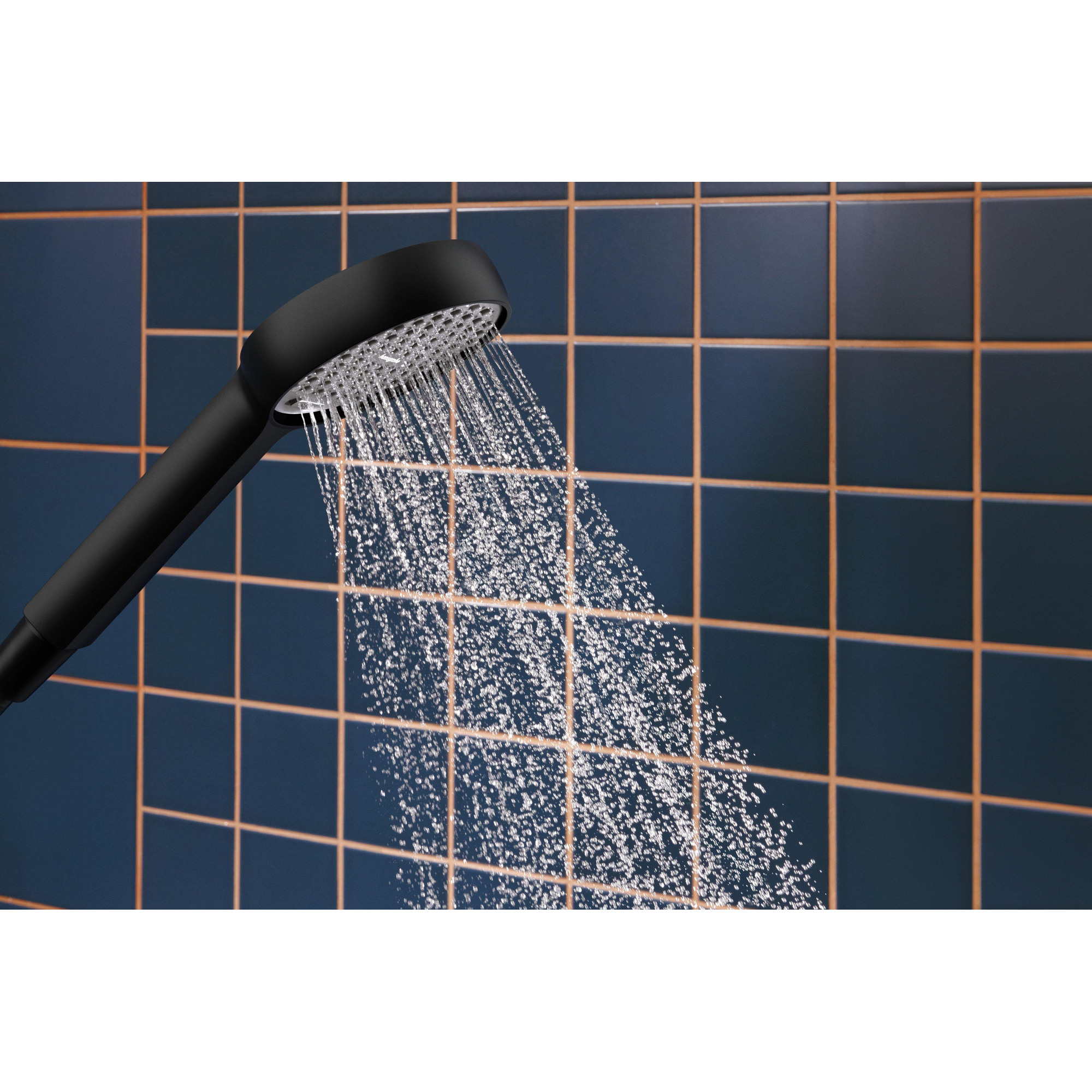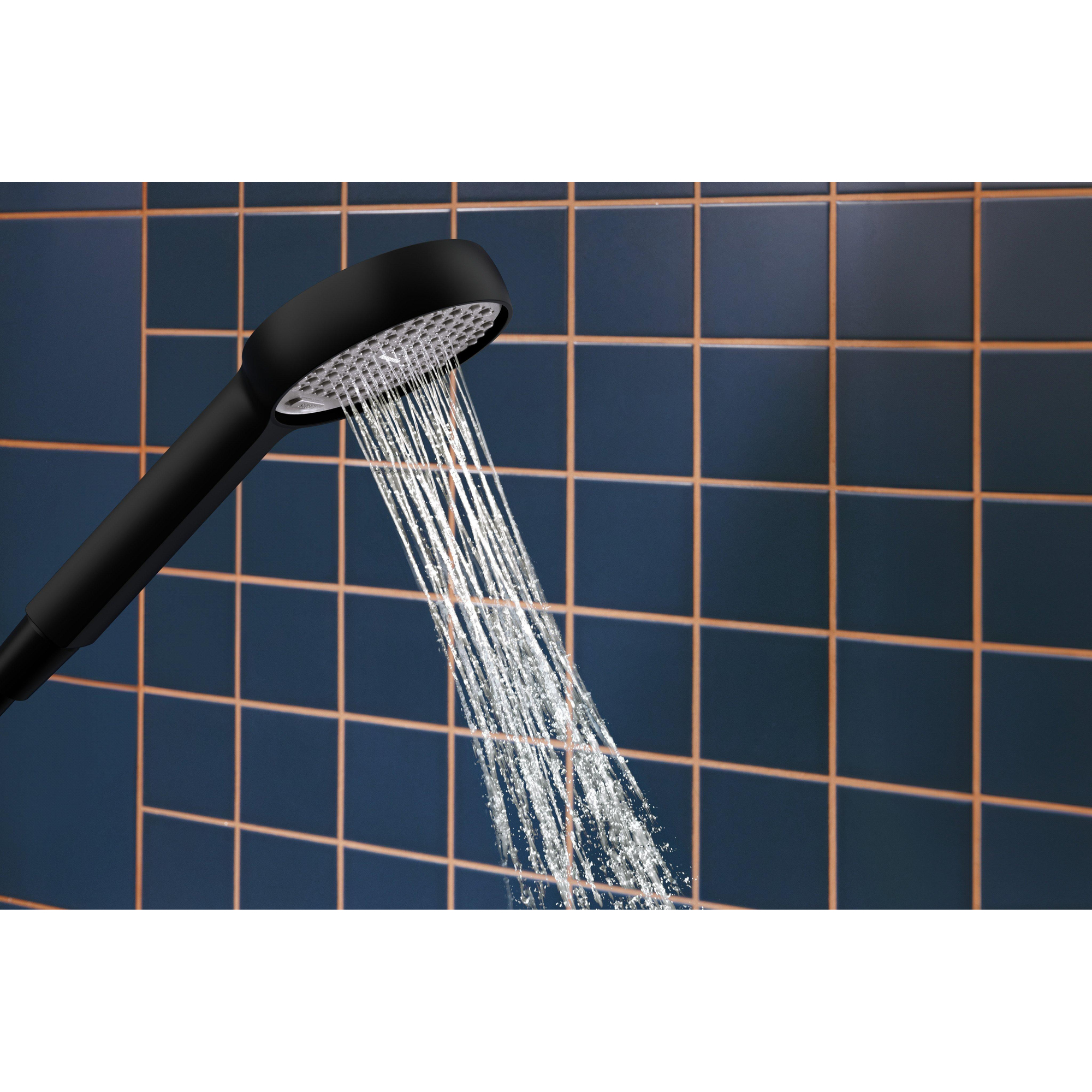 Met deze doucheset geef je jouw badkamer een moderne en stijlvolle upgrade die niet alleen mooi oogt, maar ook ontzettend praktisch is. De combinatie van een royale handdouche met een diameter van 95 mm en een glijstang van 90 cm zorgt voor een comfortabele en flexibele douche-ervaring. Dankzij de slimme straalkeuze via de Select-knop wissel je moeiteloos tussen twee verfrissende sproeistanden, waardoor elke douchebeurt een moment van ontspanning wordt. Het matte zwarte design voegt een eigentijdse, luxe uitstraling toe aan je badkamer, terwijl de duurzame materialen en doordachte techniek zorgen voor jarenlang zorgeloos gebruik. Zo geniet je niet alleen van een esthetisch hoogstandje, maar ook van een product dat met aandacht voor waterbesparing en gebruiksgemak is ontworpen.