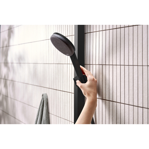 Het mat zwarte oppervlak geeft dit douchesysteem een tijdloze en elegante uitstraling. Deze kleur is niet alleen trendy, maar ook bijzonder onderhoudsvriendelijk, waardoor je badkamer er altijd verzorgd uitziet. Het minimalistische design met ronde vormen zorgt voor een harmonieuze en moderne sfeer. Zo voeg je een subtiel statement toe aan je badkamer zonder dat het overheerst. Het stijlvolle uiterlijk maakt het bovendien eenvoudig om dit systeem te combineren met andere zwarte of contrasterende elementen in je badkamer, wat zorgt voor een samenhangend en luxe geheel.