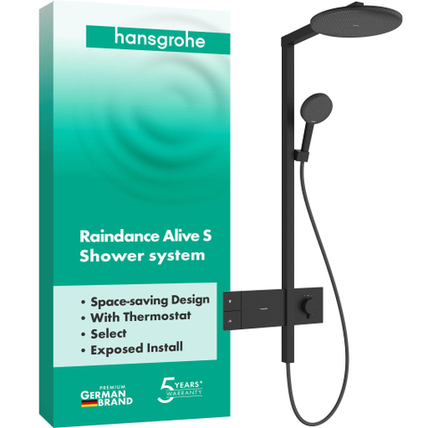 Hansgrohe Raindance alive showerpipe - 300 1 jet thermostaat mat zwart