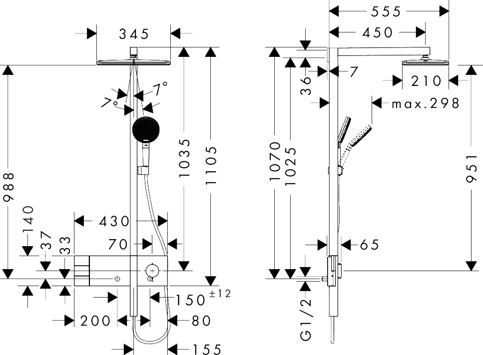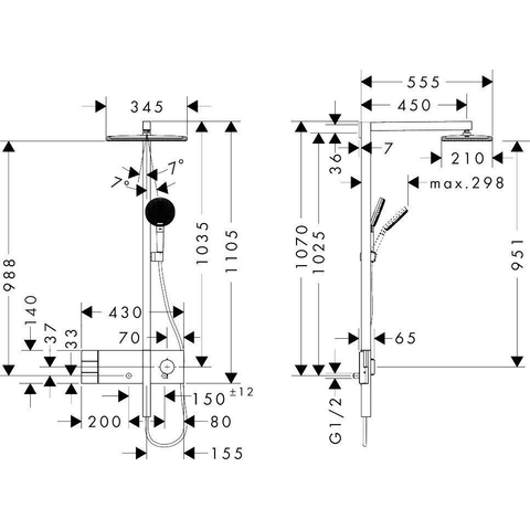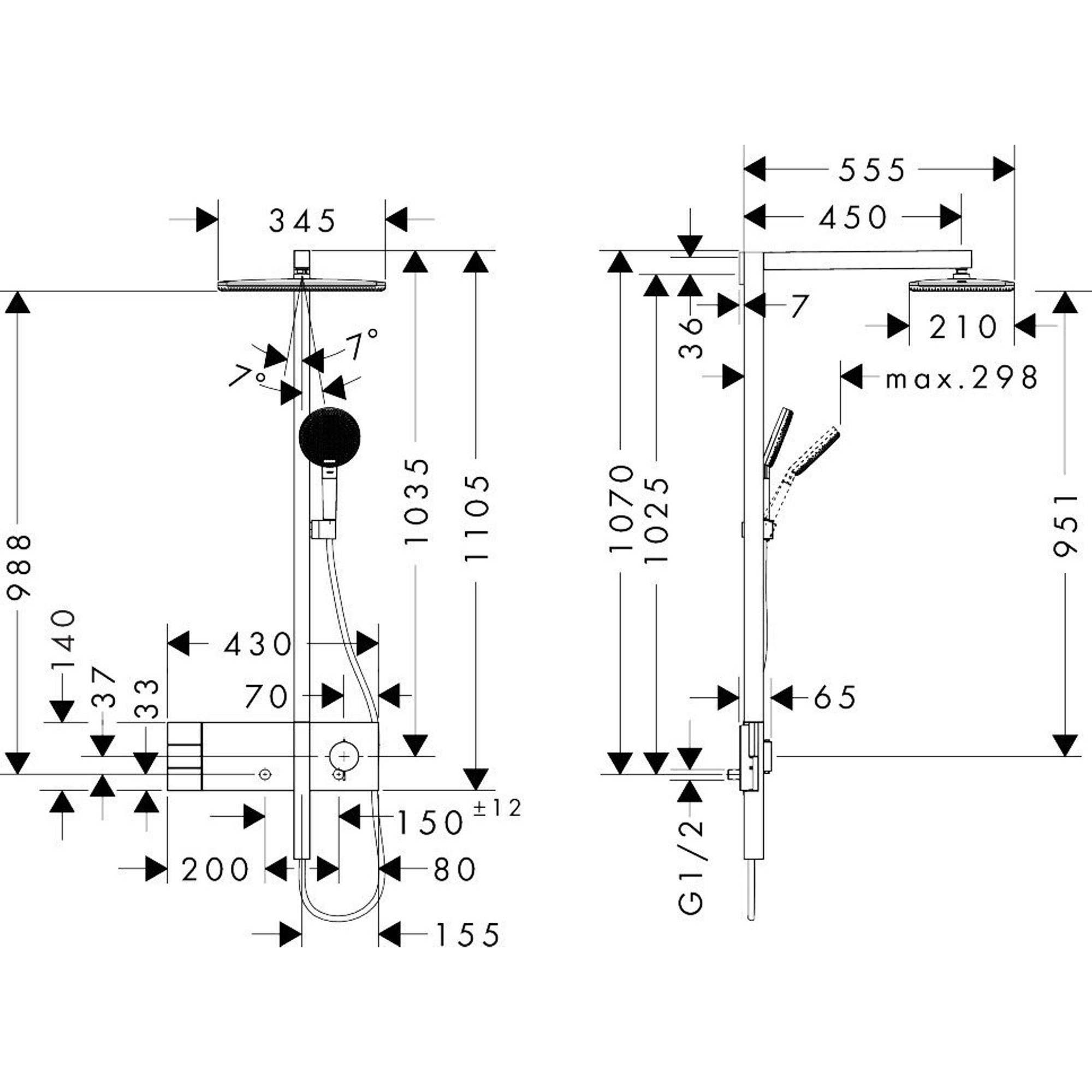 Hansgrohe Raindance alive showerpipe - 210/340 2 jet thermostaat chroom