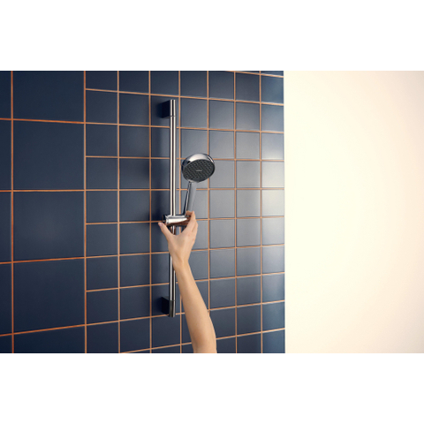 De doucheset is ontworpen met het oog op gebruiksgemak en comfort. De handdouche heeft twee stralingsstanden – Rain en ImpactRain – die je eenvoudig wisselt via de Select-knop. De glijstang is traploos in hoogte verstelbaar en voorzien van een vergrendelend push-schuifstuk, zodat je de douchekop precies op de gewenste plek zet. De draaikoppeling voorkomt dat de slang in de knoop raakt, wat zorgt voor een soepele beweging tijdens het douchen. Dankzij het slimme EasySplit-systeem is onderhoud en reparatie bovendien eenvoudig uit te voeren, wat de levensduur verlengt en je zorgeloos laat genieten.