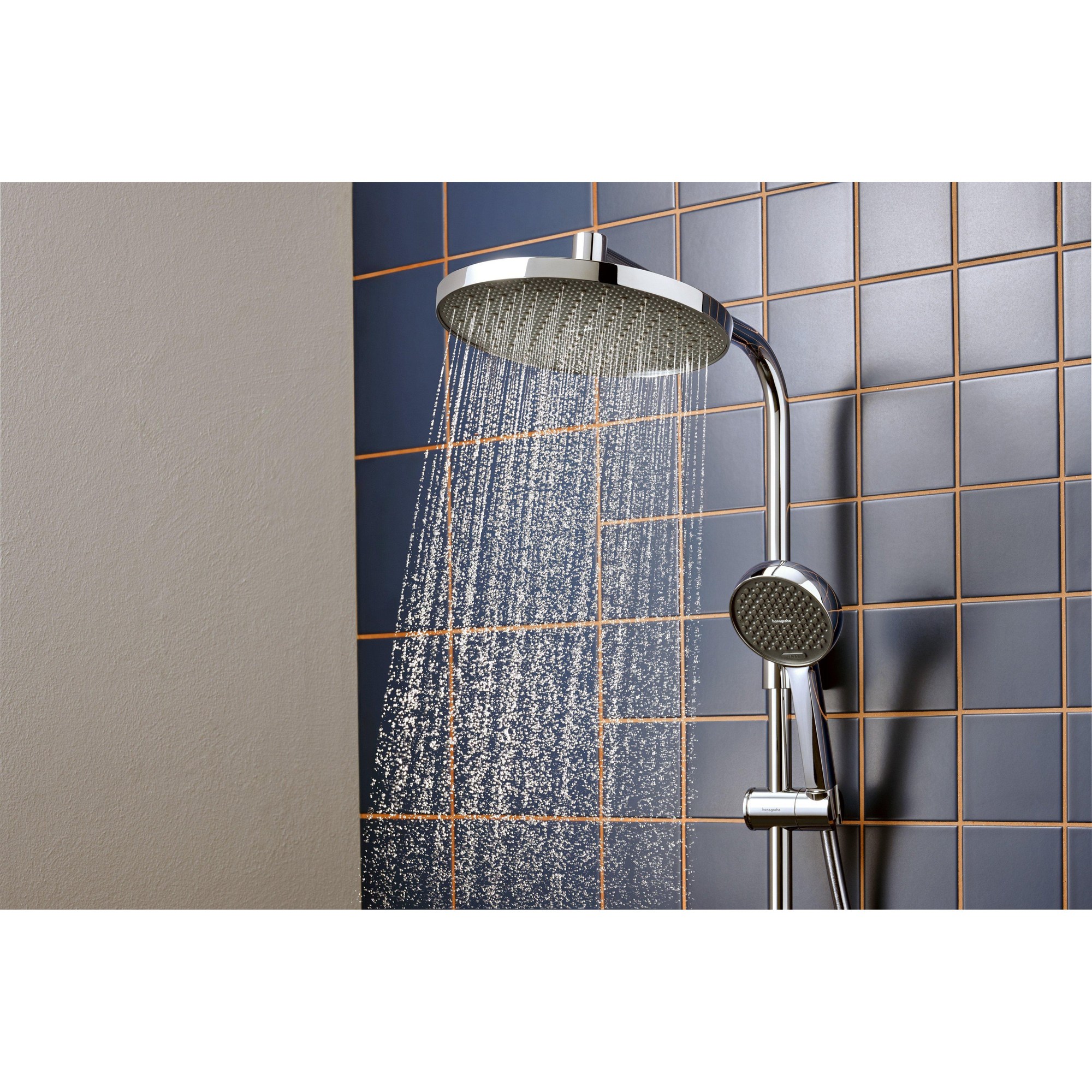 Dit douchesysteem is uitgerust met EcoSmart-technologie die het waterverbruik beperkt tot maximaal 8 liter per minuut zonder in te leveren op comfort. De straalnoppen van de hoofddouche zijn voorzien van QuickClean+, waardoor kalkaanslag eenvoudig te verwijderen is en de levensduur van het product wordt verlengd. De FlexPower-technologie zorgt ervoor dat de straalnoppen zich automatisch aanpassen aan de waterdruk, wat zorgt voor een constante en betrouwbare waterstraal. Daarnaast is de mengkraan voorzien van een keramisch kardoes en een instelbare temperatuurbegrenzing, wat niet alleen veiligheid biedt maar ook bijdraagt aan de duurzaamheid van het systeem. Zo geniet je jarenlang van een betrouwbare en milieuvriendelijke douche.