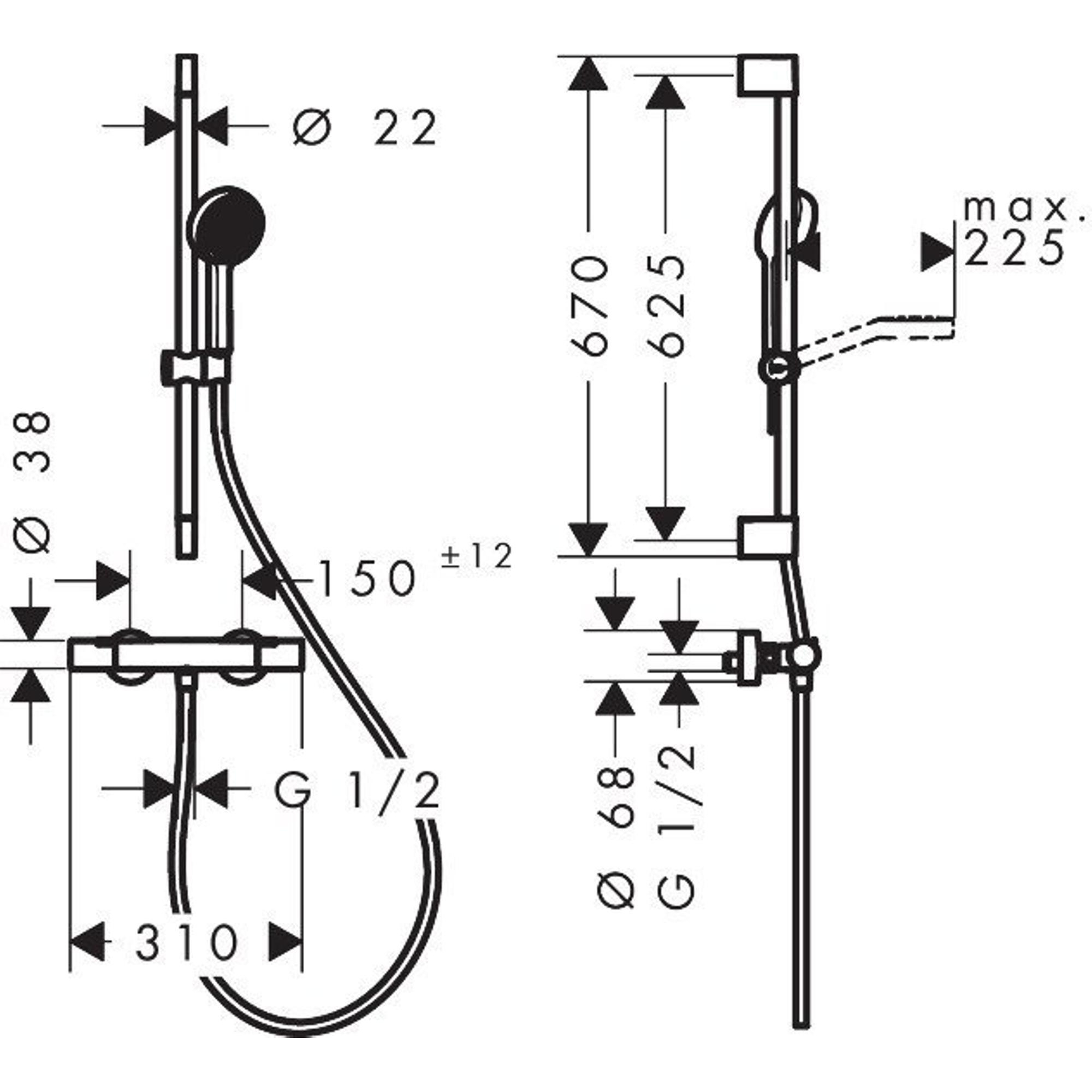 hansgrohe Activera Select S 95 renovatieset - 2jet - EcoSmart met Ecostat Fine - glijstang 65cm - chroom