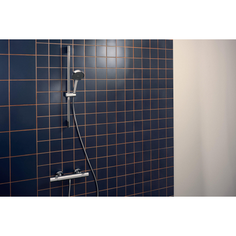 De renovatieset is ontworpen met het oog op gebruiksgemak en veiligheid. De Select-knop maakt het wisselen tussen de twee straalsoorten – Rain en ImpactRain – eenvoudig en intuïtief. De thermostaatkraan met Ecostat Fine technologie zorgt voor een constante watertemperatuur en heeft een veiligheidsblokkering bij 40°C, zodat je nooit onverwacht te heet water krijgt. De glijstang is traploos in hoogte verstelbaar en het schuifstuk vergrendelt stevig, waardoor je de handdouche altijd op de perfecte plek hebt. Ook de draaikoppeling van de slang voorkomt dat deze in de knoop raakt, wat het douchen nog aangenamer maakt.