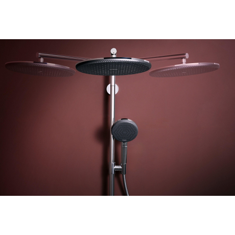 Het ontwerp van dit douchesysteem is een waar kunstwerk, geïnspireerd door de harmonie tussen water, mens en ruimte. Met zijn ronde, 30 cm brede hoofddouche en chroomkleurige afwerking straalt het tijdloze elegantie uit die moeiteloos past in elke moderne badkamer. De subtiele details en het minimalistische karakter zorgen ervoor dat het systeem niet alleen functioneel is, maar ook een echte blikvanger. Hierdoor geef je jouw badkamer een upgrade die niet alleen nu, maar ook in de toekomst blijft imponeren.