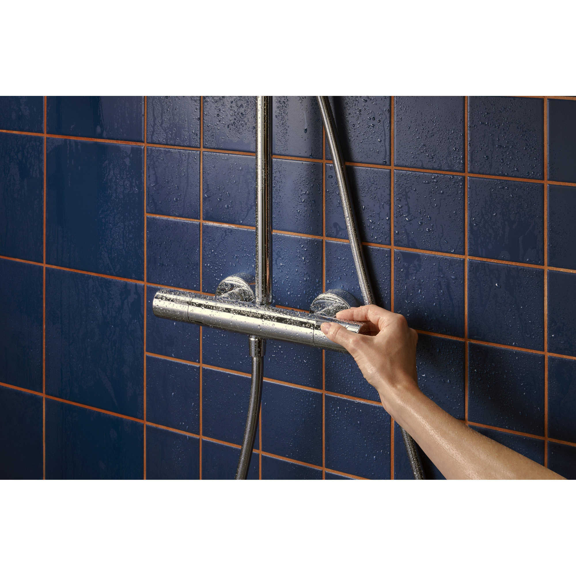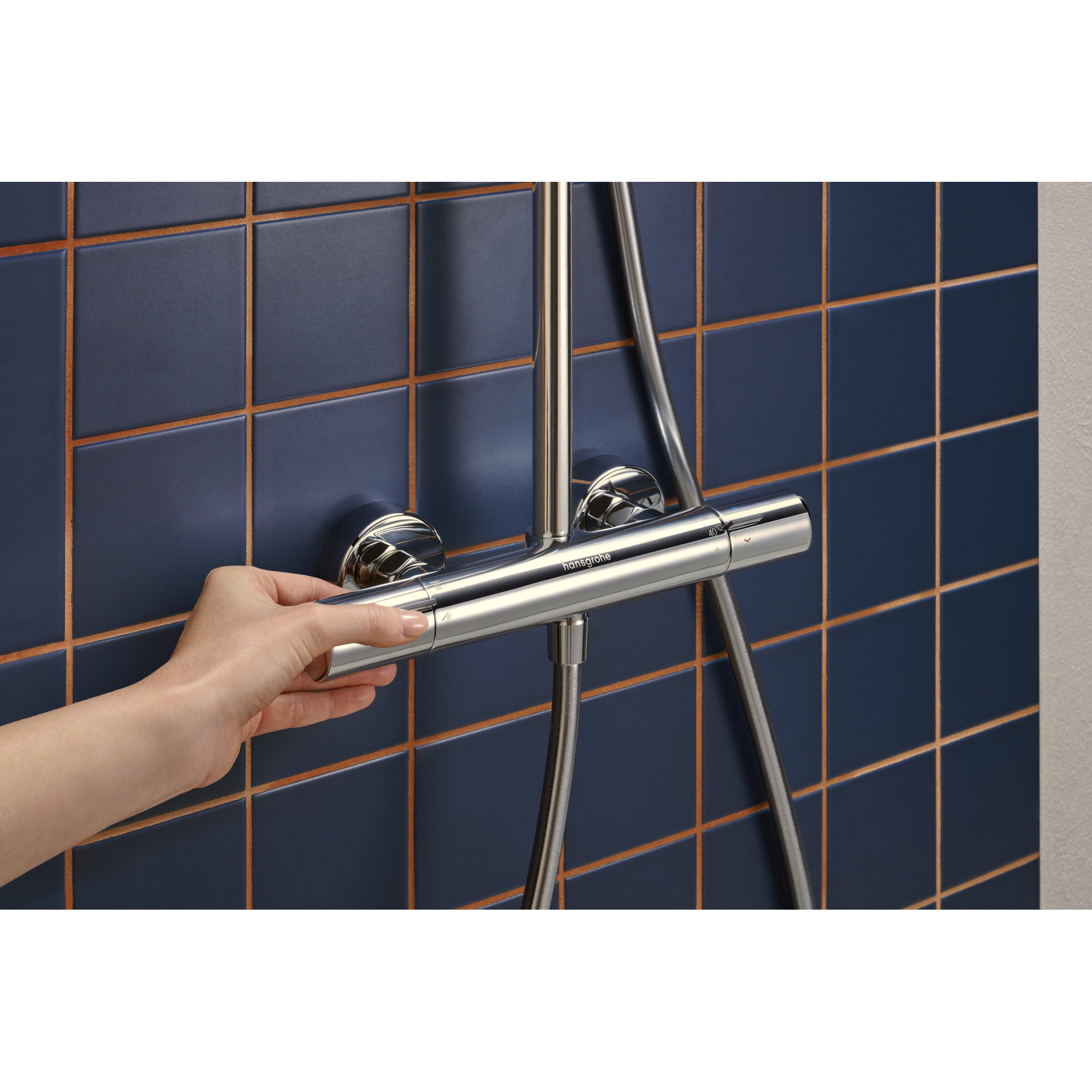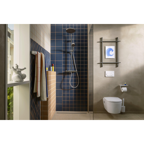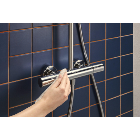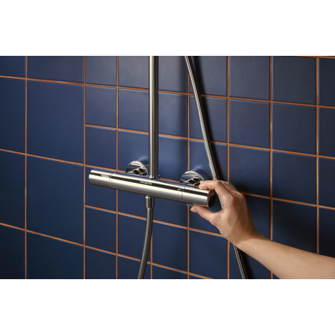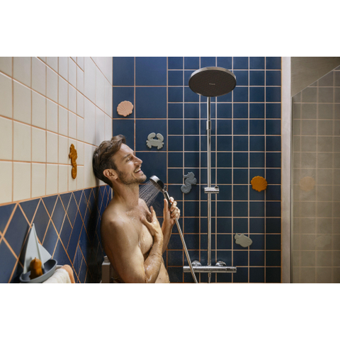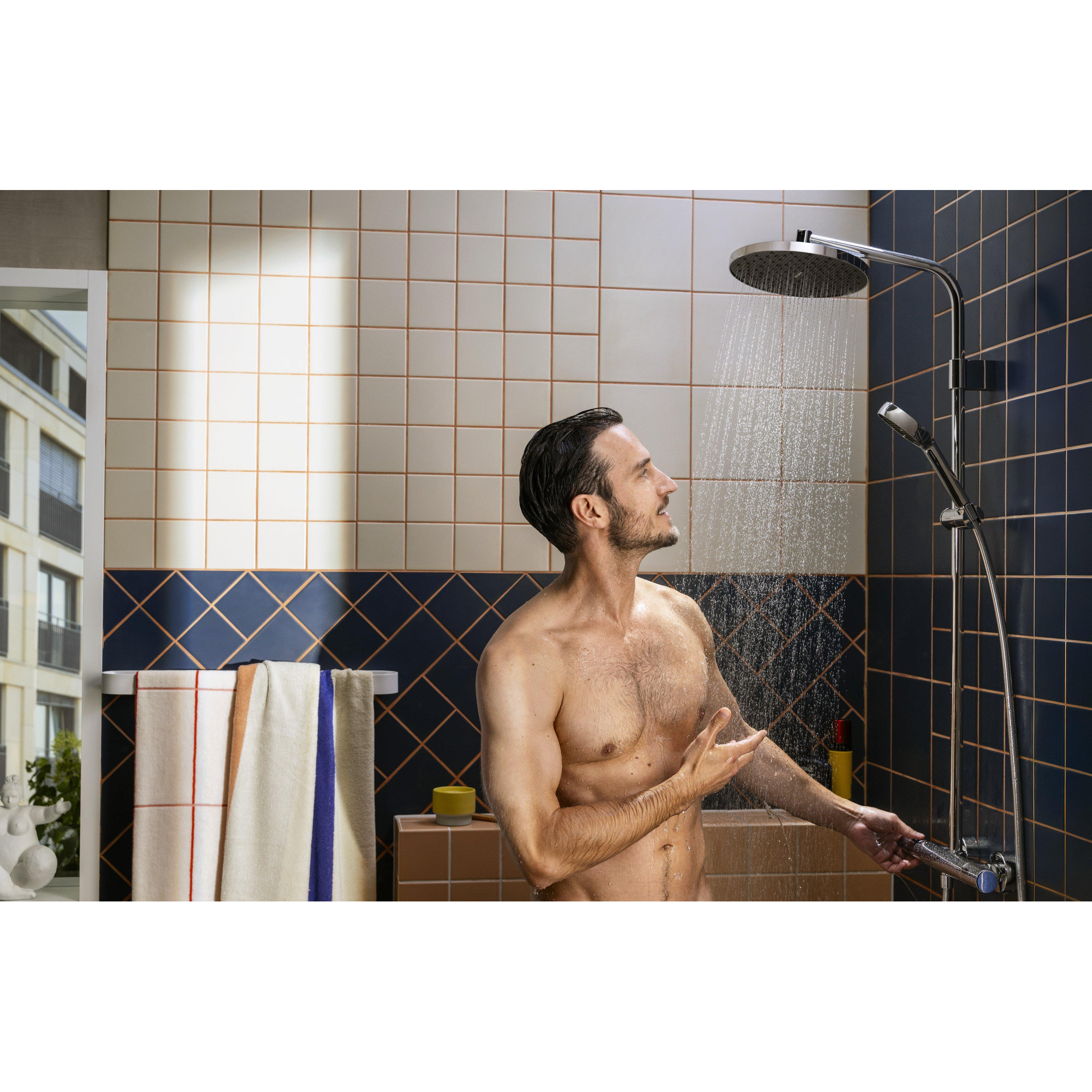 De combinatie van een hoofddouche en handdouche biedt maximale flexibiliteit. Met de handige Select-knop op de handdouche schakel je moeiteloos tussen verschillende straalsoorten, zoals Rain en ImpactRain, voor een persoonlijke douche-ervaring. Het schuifstuk is in hoogte verstelbaar en voorzien van een vergrendeling, zodat je de handdouche altijd op de juiste plek hebt. De thermostaat met veiligheidsblokkering bij 40°C zorgt voor een constante en veilige watertemperatuur, terwijl de SafetyFunctie voorkomt dat het water te heet wordt. Dit maakt douchen niet alleen comfortabel, maar ook veilig voor het hele gezin.