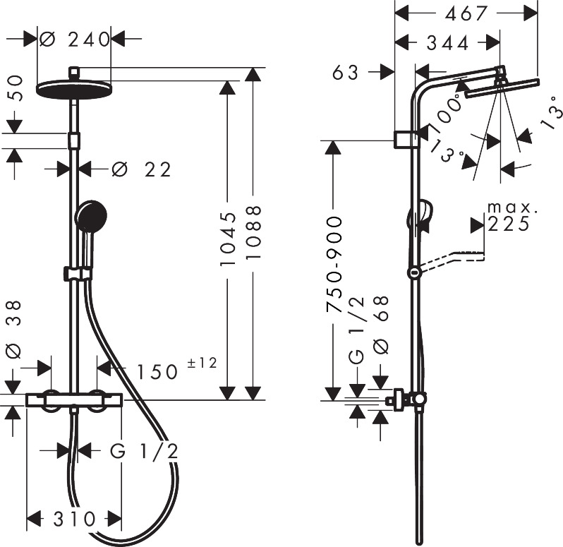 De geïntegreerde thermostaat met Ecostat Fine zorgt voor een veilige en constante watertemperatuur, met een veiligheidsblokkering bij 40 graden om verbranding te voorkomen. De handdouche biedt twee straalsoorten, Rain en ImpactRain, die je eenvoudig wisselt via de handige Select-knop. Het schuifstuk is in hoogte verstelbaar en vergrendelbaar, zodat je de douchekop altijd op de juiste plek hebt. Bovendien is het systeem uitgerust met een kogelgewricht, waardoor je de hoofddouche in elke gewenste hoek kunt draaien. Deze slimme functies maken douchen niet alleen comfortabel, maar ook veilig en gebruiksvriendelijk.Kenmerken: