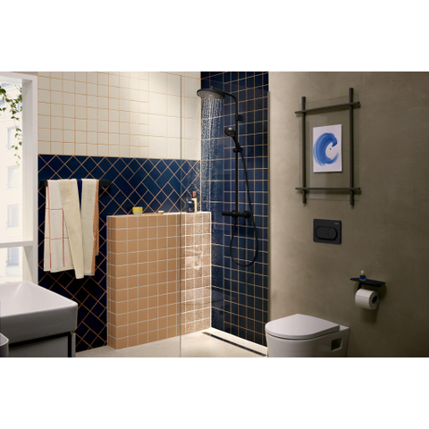Het matzwarte oppervlak geeft deze douche een eigentijdse en luxe uitstraling die perfect past in moderne badkamers. Dit tijdloze design zorgt ervoor dat jouw badkamer er niet alleen mooi uitziet, maar ook een statement maakt. De strakke lijnen en het minimalistische karakter maken het eenvoudig om deze douche te combineren met andere badkameraccessoires. Bovendien is het oppervlak bestand tegen vingerafdrukken en makkelijk schoon te houden, waardoor jouw badkamer altijd verzorgd oogt. Zo geniet je niet alleen van een functionele douche, maar ook van een stijlvolle toevoeging die jouw badkamer compleet maakt.