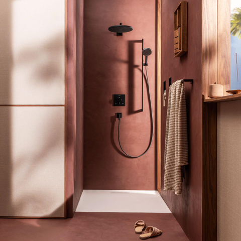 Het strakke, mat zwarte design van deze thermostaatkraan past naadloos in vrijwel elke badkamerstijl, van modern tot industrieel. Door het minimalistische uiterlijk blijft het een tijdloos element dat jarenlang mooi blijft. De kraanrozet is extra plat en subtiel vormgegeven, waardoor het geheel een elegante en rustige uitstraling krijgt. Zo geef je jouw douche een luxe uitstraling zonder dat het overheerst. Het mat zwarte oppervlak is bovendien bestand tegen vingerafdrukken en behoudt zijn fraaie look met weinig onderhoud.