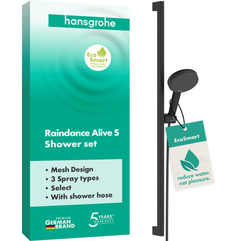 Hansgrohe Raindance alive 125 3 jet EcoSmart doucheset 90cm mat zwart