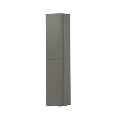 Het rechte, slanke silhouet in combinatie met afgeronde hoeken geeft deze hoge kast een zacht maar toch strak voorkomen. De mat beton groene kleur voegt een subtiele, moderne touch toe die mooi matcht met witte, zwarte en houtkleurige badkamermeubels. Het verticaal gefreesde ribbelfront zorgt voor extra diepte en luxe, zonder schreeuwerig te worden. Hierdoor krijgt je badkamer direct een designerlook, ook als de ruimte verder rustig of minimalistisch is ingericht. De greepvorm is voorbereid, zodat je een passende greep kunt kiezen die bij de rest van je interieur aansluit. Denk aan mat zwart voor een stoere, industriële uitstraling of geborsteld messing voor een warme, hotel-chique look. Zo creëer je een harmonieus geheel waarin stijl en functionaliteit hand in hand gaan.