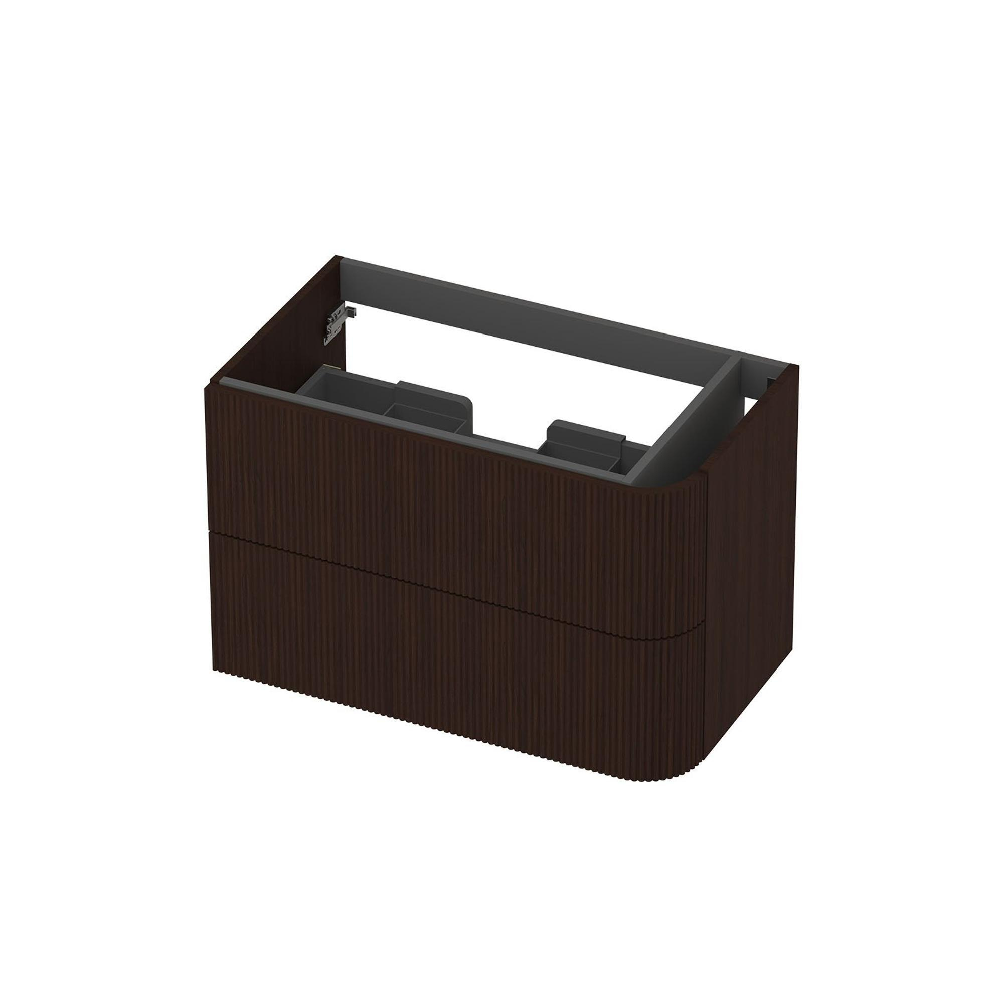 INK Concept R Wastafelonderkast - 80x45x52cm - 2 lades - opliggende grepen - gefreesd - afgeronde hoek rechts - MDF - dark veneer