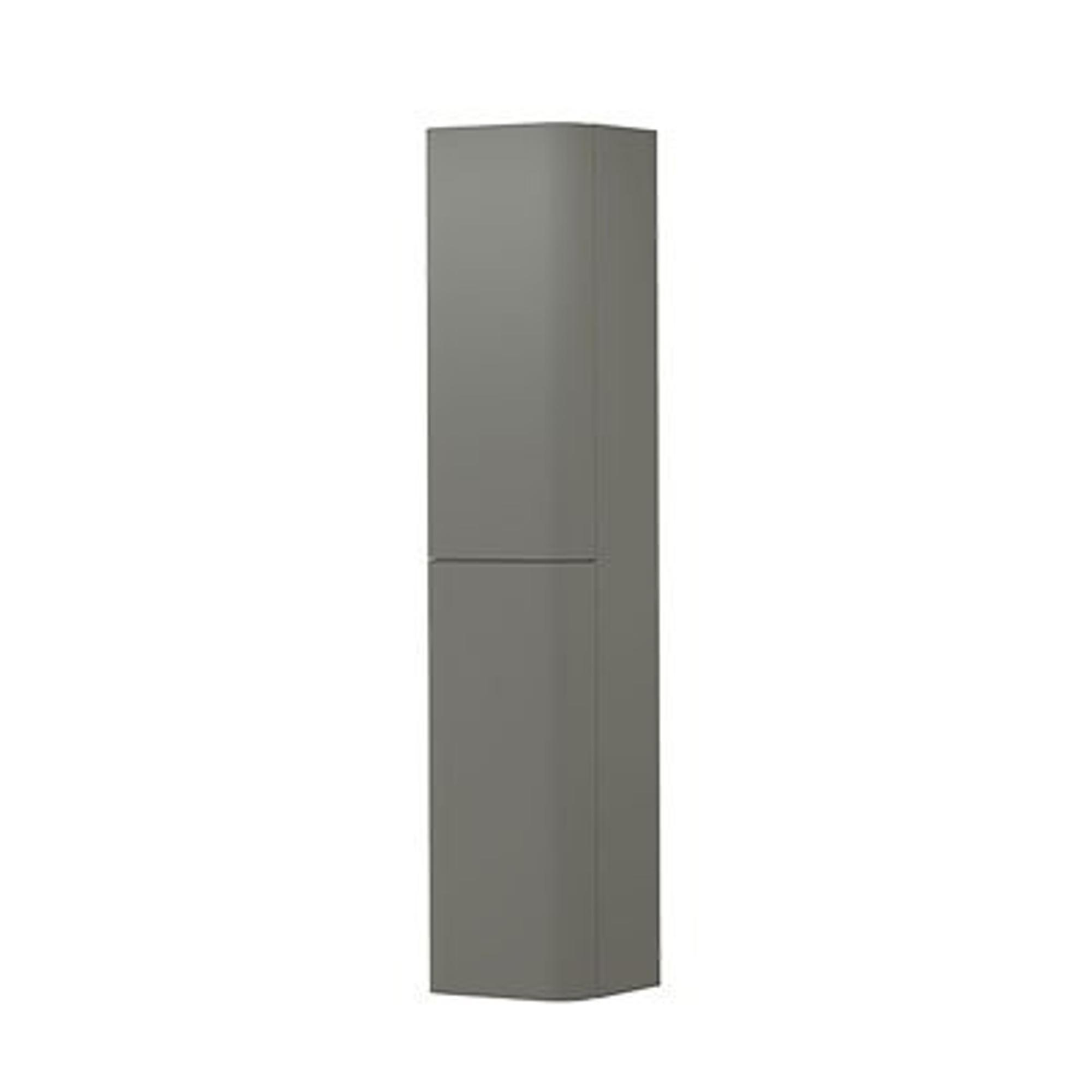 Deze compacte hoge kast is ideaal als je in een kleinere of middelgrote badkamer toch flink wat opbergruimte wilt creëren zonder het geheel druk te laten ogen. Dankzij het slanke formaat past hij perfect naast een wastafelmeubel, in een nis of bijvoorbeeld naast de douche, terwijl de hoogte zorgt voor verrassend veel bergruimte voor handdoeken, verzorgingsproducten en voorraad. De strakke vorm met afgeronde hoeken en de matte, beton-groene kleur geven je badkamer een rustige, moderne uitstraling die goed combineert met zowel lichte als donkere tegels. Dit meubel is een slimme keuze als je houdt van een opgeruimde badkamer, graag alles achter gesloten deuren bewaart en tegelijk een subtiel designaccent wilt toevoegen dat nét anders is dan standaard wit of hout. Door de wandmontage blijft de vloer vrij, wat niet alleen ruimtelijk oogt maar ook het schoonmaken een stuk makkelijker maakt.