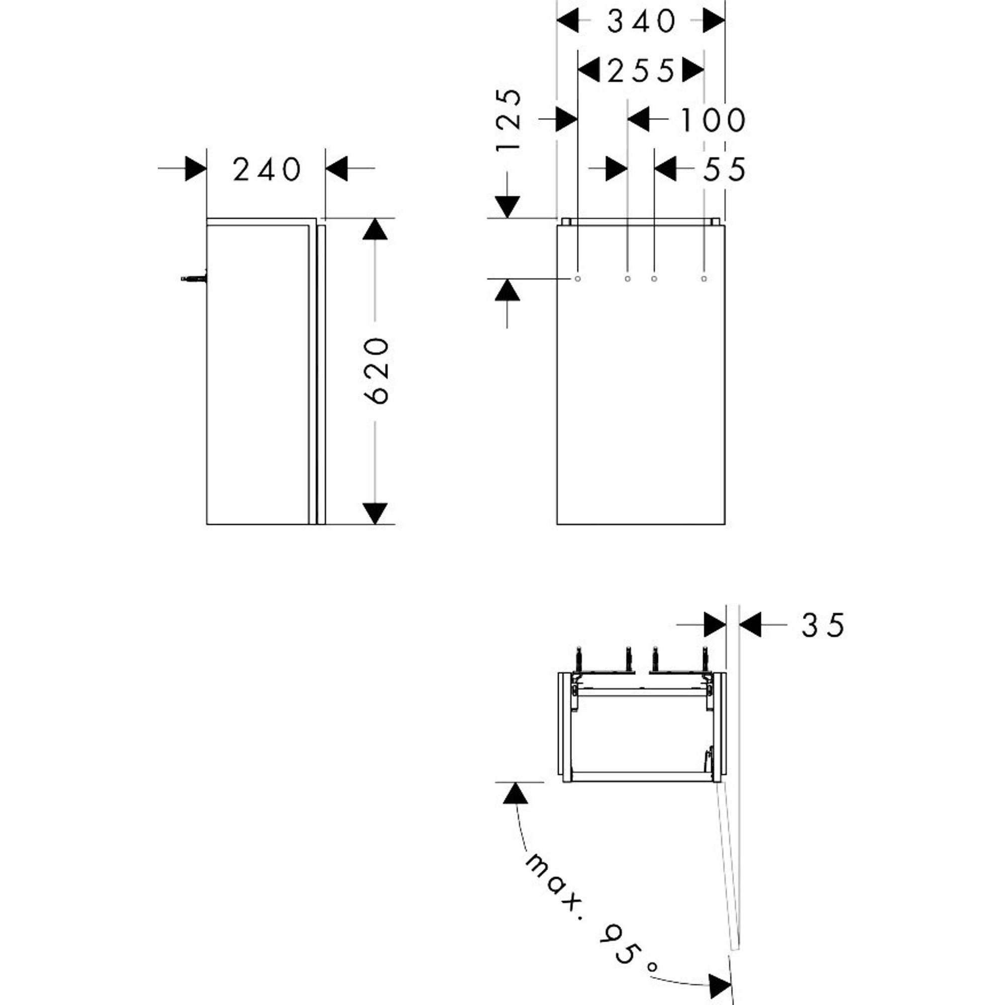 Hansgrohe Xilesa E badmeubel 340/240 voor fontein, scharnier rechts mat wit