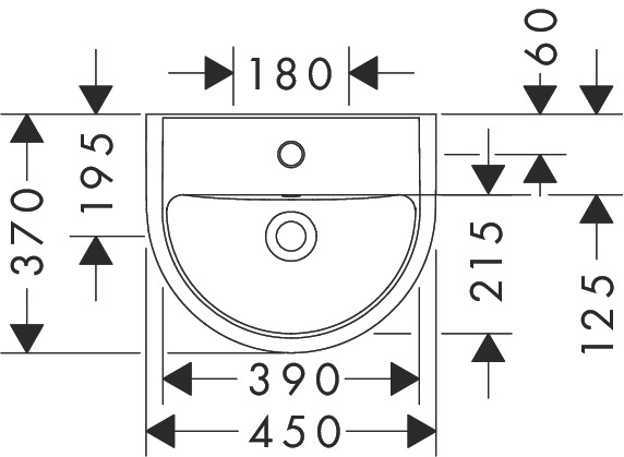 Hansgrohe GladeLake S handwastafel 450/370 met kraangat en overloop