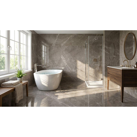 Ervaar de luxe van deze keramische vloer- en wandtegels die een vleugje koninklijke pracht aan je badkamer toevoegen. De gerectificeerde afwerking zorgt voor strakke en naadloze voegen, waardoor een harmonieus geheel ontstaat. De bruine tinten van het Fior Di Bosco marmer geven een gevoel van rijkdom en verfijning aan de ruimte. Of je nu geniet van een ontspannend bad of je klaarmaakt voor de dag, deze tegels creëren een sfeer van weelde en comfort in je badkamer.